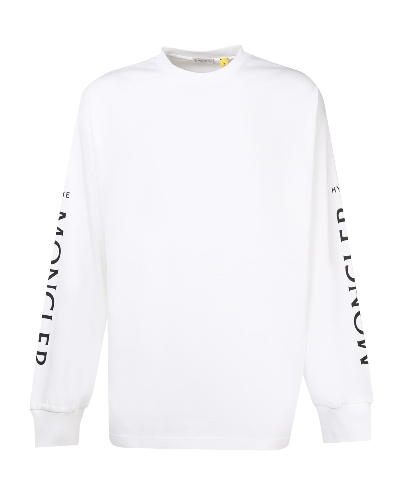White Moncler Hyke Knit In Cotton from Moncler Genius -Oversized fit -Round neck -Relaxed cut -Model in heavy jersey -Logo print on the sleeves -Made in Italy -Colour: White -100% Cotton
