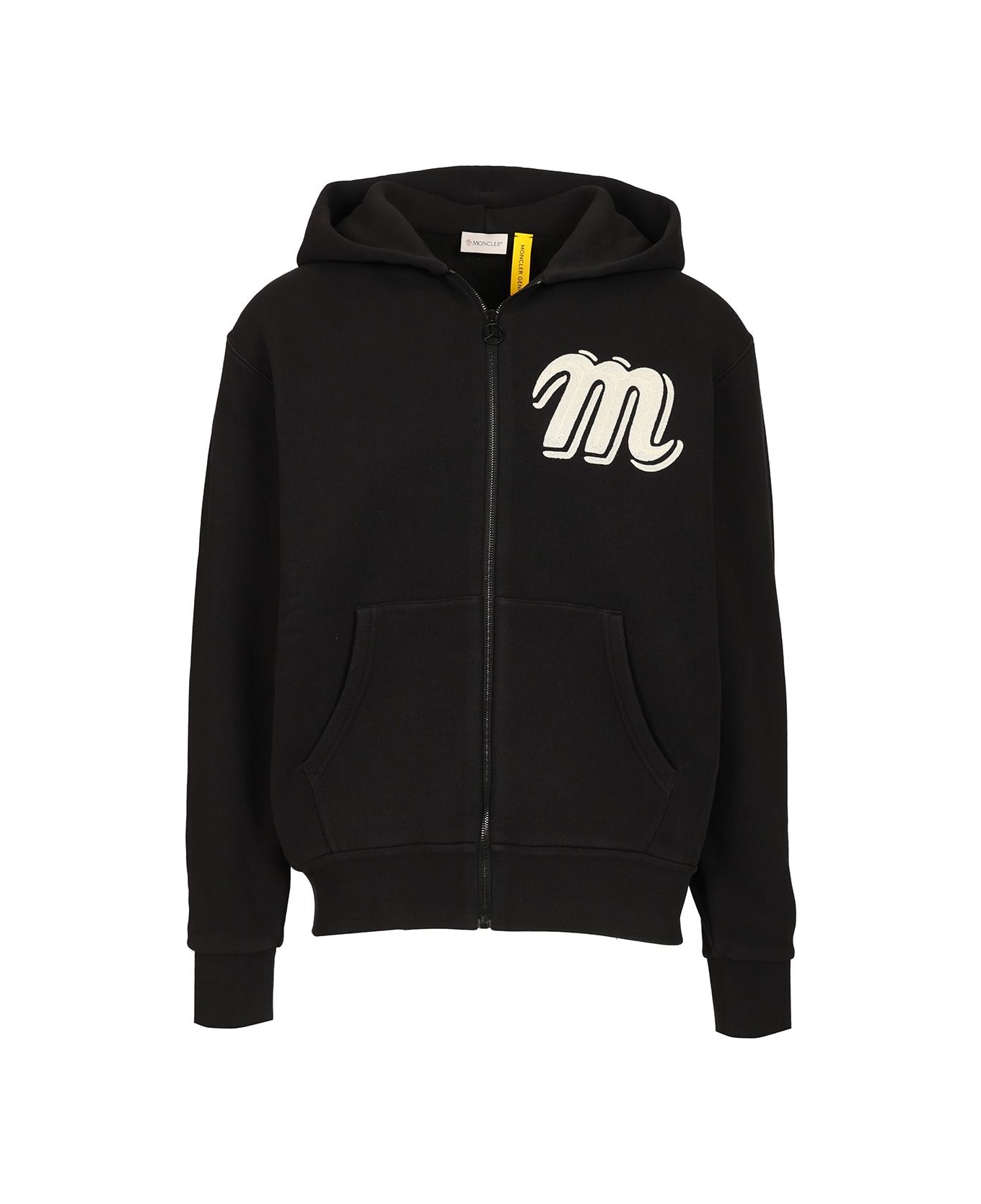 Cotton hoodie with zip fastening, kangaroo pockets, embroidered M on the chest and logo patch on the sleeve