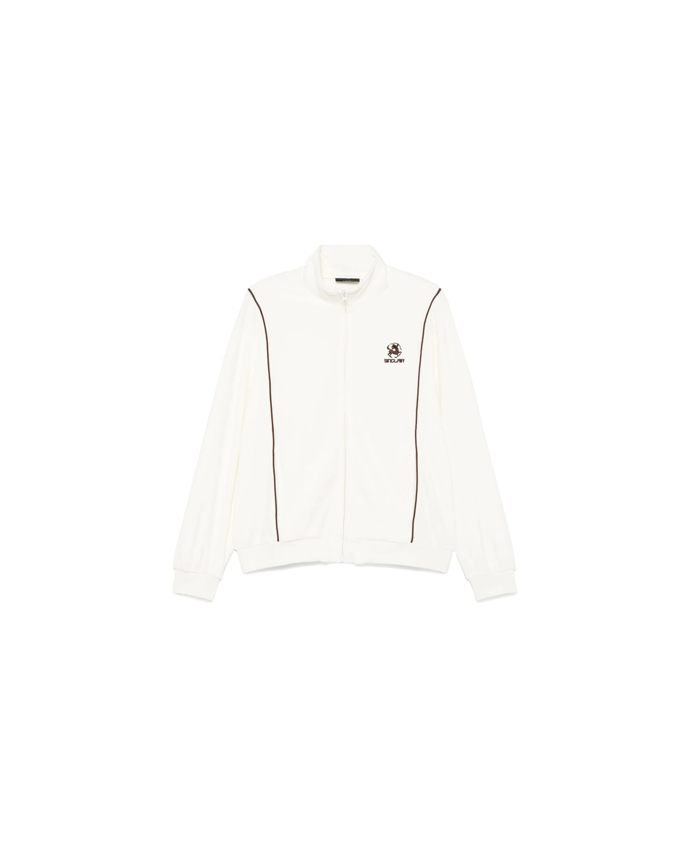cream white front zip fastening embroidered logo at the chest long sleeves