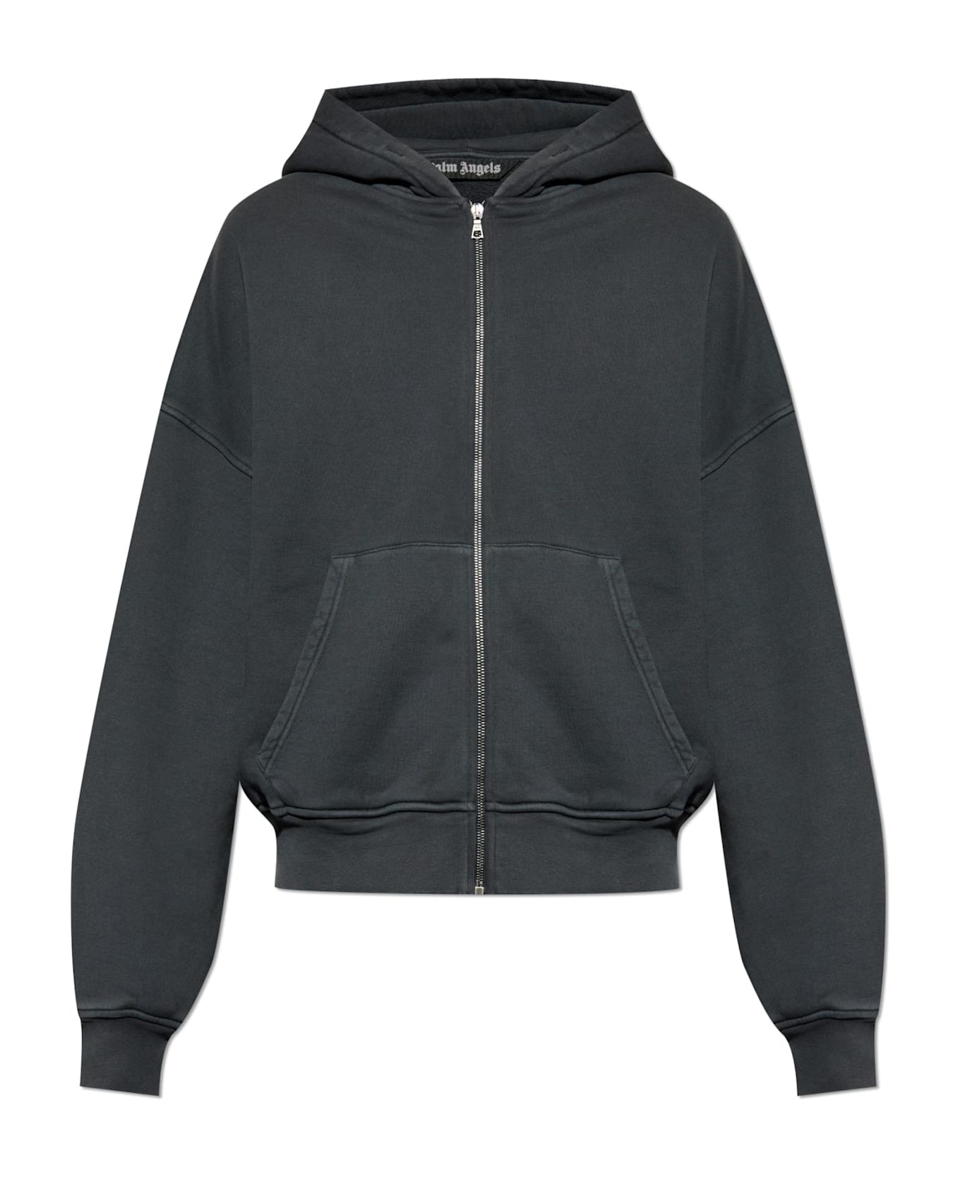 Embrace unparalleled sophistication with this oversized zip-up hoodie from Palm Angels. Crafted from premium heavyweight cotton, the piece showcases a refined matte texture and pronounced weave, ensuring exceptional durability and comfort. Its loose, relaxed silhouette, dropped shoulders, and subtly lowered hem offer a contemporary yet timeless appeal, further accentuated by wide ribbed cuffs and hem for an impeccable fit. The minimalist, solid-colored design free from front prints exudes understated elegance, while two spacious kangaroo pockets provide practical convenience. The full-length metal zipper allows effortless versatility, and the designer's distinctive logo, discreetly placed on the rear of the hood, imparts a mark of exclusivity. Why choose this product? Exquisitely soft, high-quality cotton for enduring comfort Striking minimalist style with a luxury streetwear essence Signature Palm Angels design rooted in skate subculture and tailoring tradition Functional details: generous hood, practical pockets, easy zip closure Perfect balance of contemporary fashion and timeless elegance