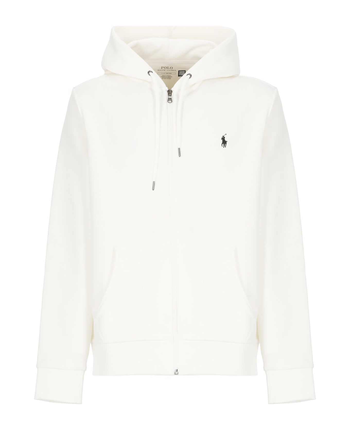 - White Ralph Lauren cotton sweatshirt for man - Hood with drawstrings - Long sleeves - Front zip fastening - Elastic ribbed trims - Front contrasting color embroidered iconic Pony - Two front slit pockets