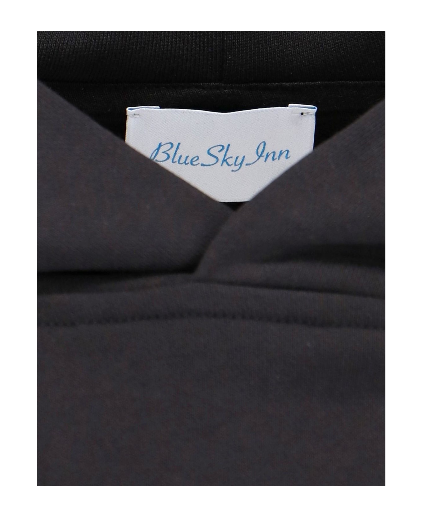 Blue Sky Inn black cotton, crewneck hoodie with front red and light blue print, ribbed cuffs and hem, straight hem.