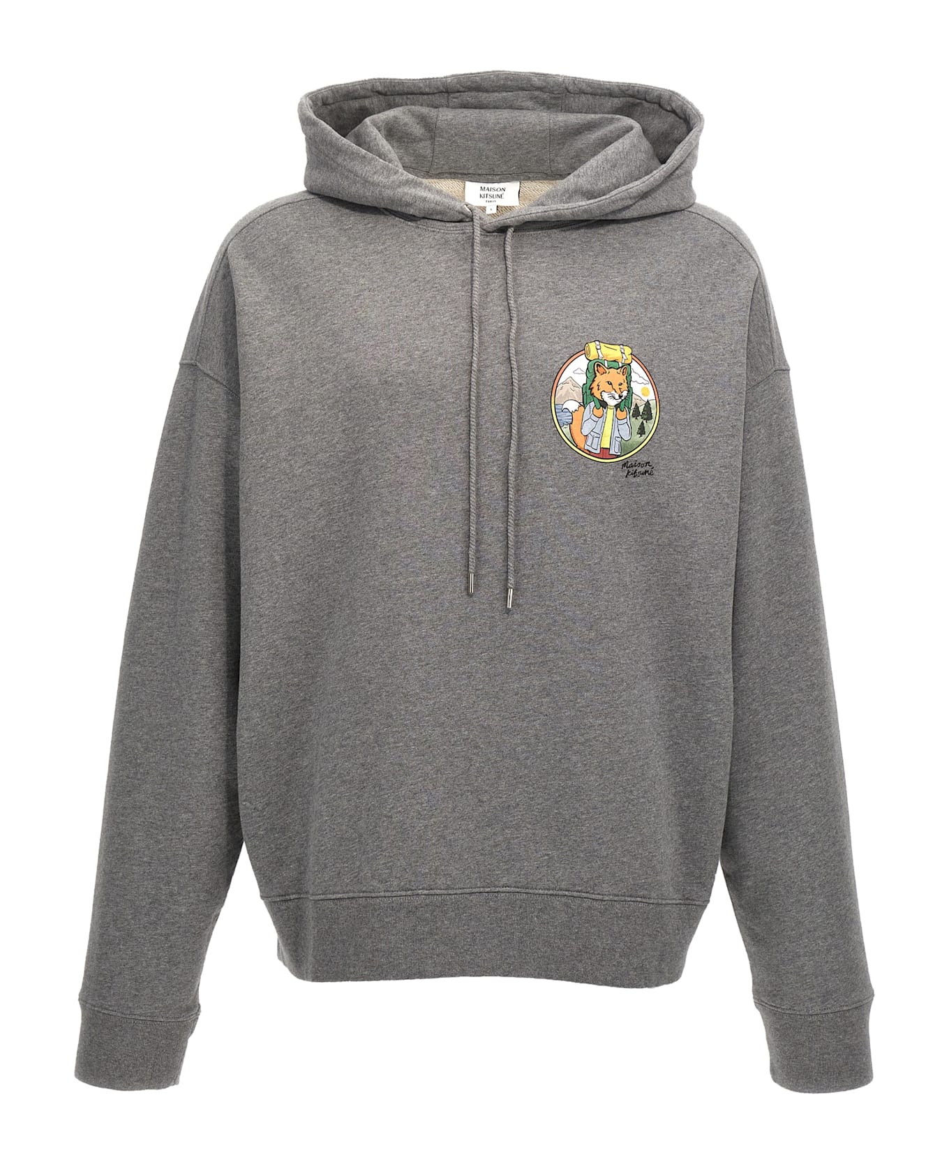 'Rambling Fox' cotton hoodie with front print, long cuffed sleeves.