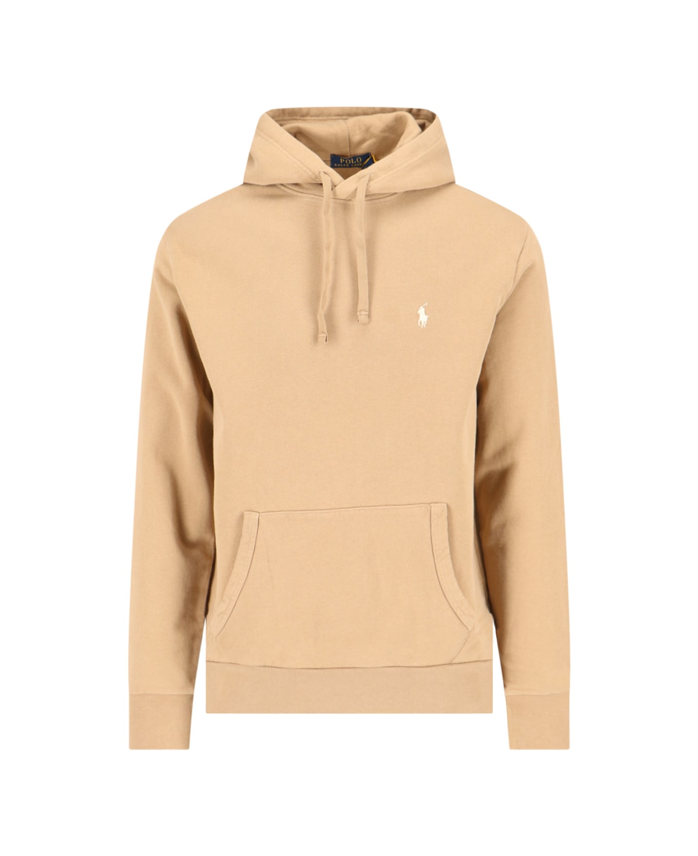 Polo Ralph Lauren 'Rigby Go' hoodie in beige piqué cotton with drawstring, white logo embroidery on the front, maxi front pocket, ribbed trim, straight hem.