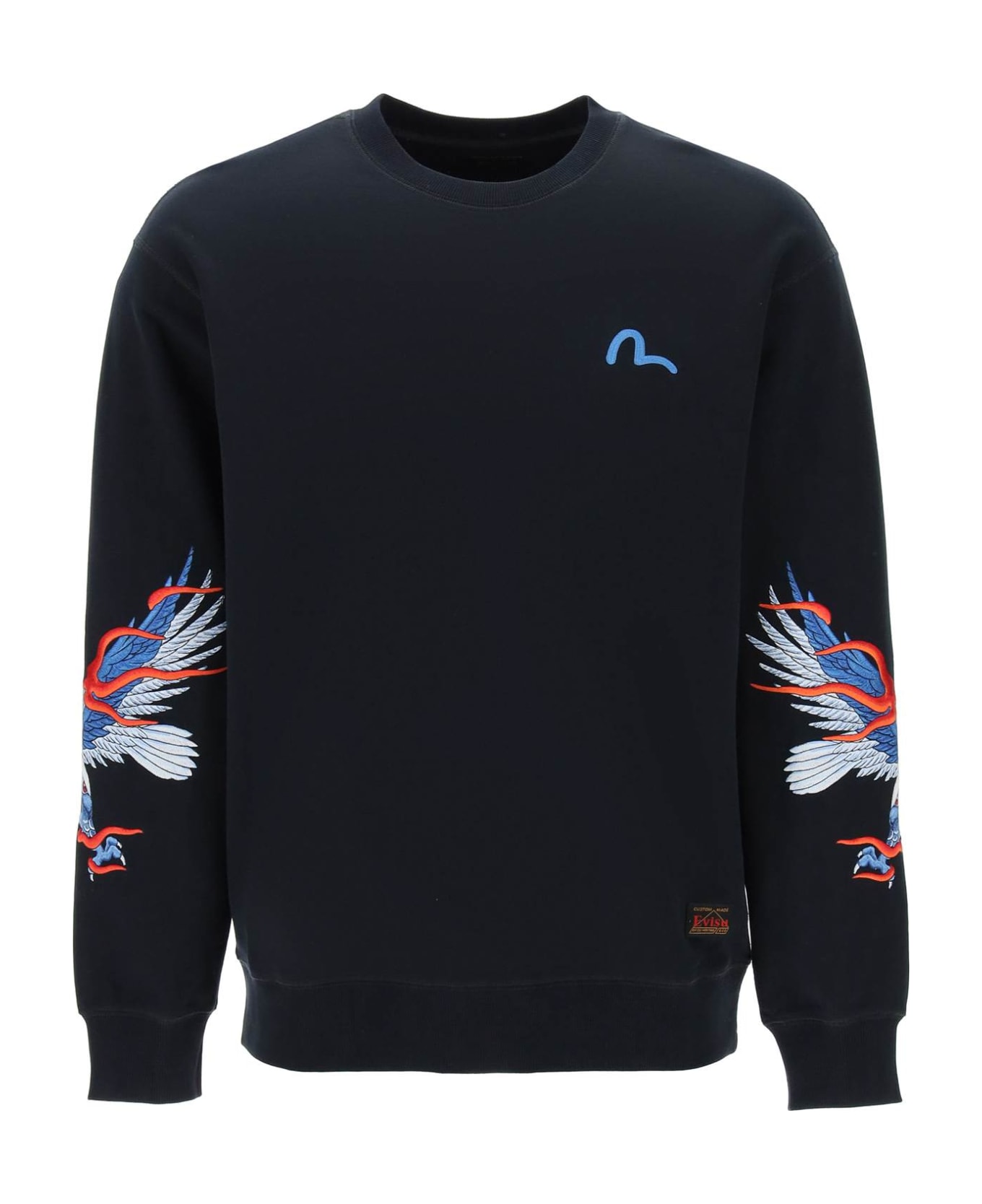 Evisu cotton crew-neck sweatshirt embroidered with an eagle motif on either sleeve and a Seagull logo on the chest. Ribbed neck, cuffs and hem. Relaxed fit. The model is 187 cm tall and wears a size L.