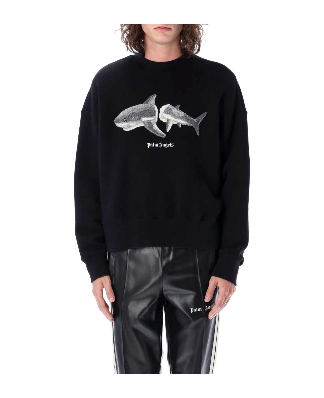 Black Cotton Shark Crewneck By Palm Angels. Featuring: - Ribbed Crewneck - Shark Patch At Front - Logo Print At Front - Long Sleeves - Ribbed Cuffs And Hem - Straight Hem