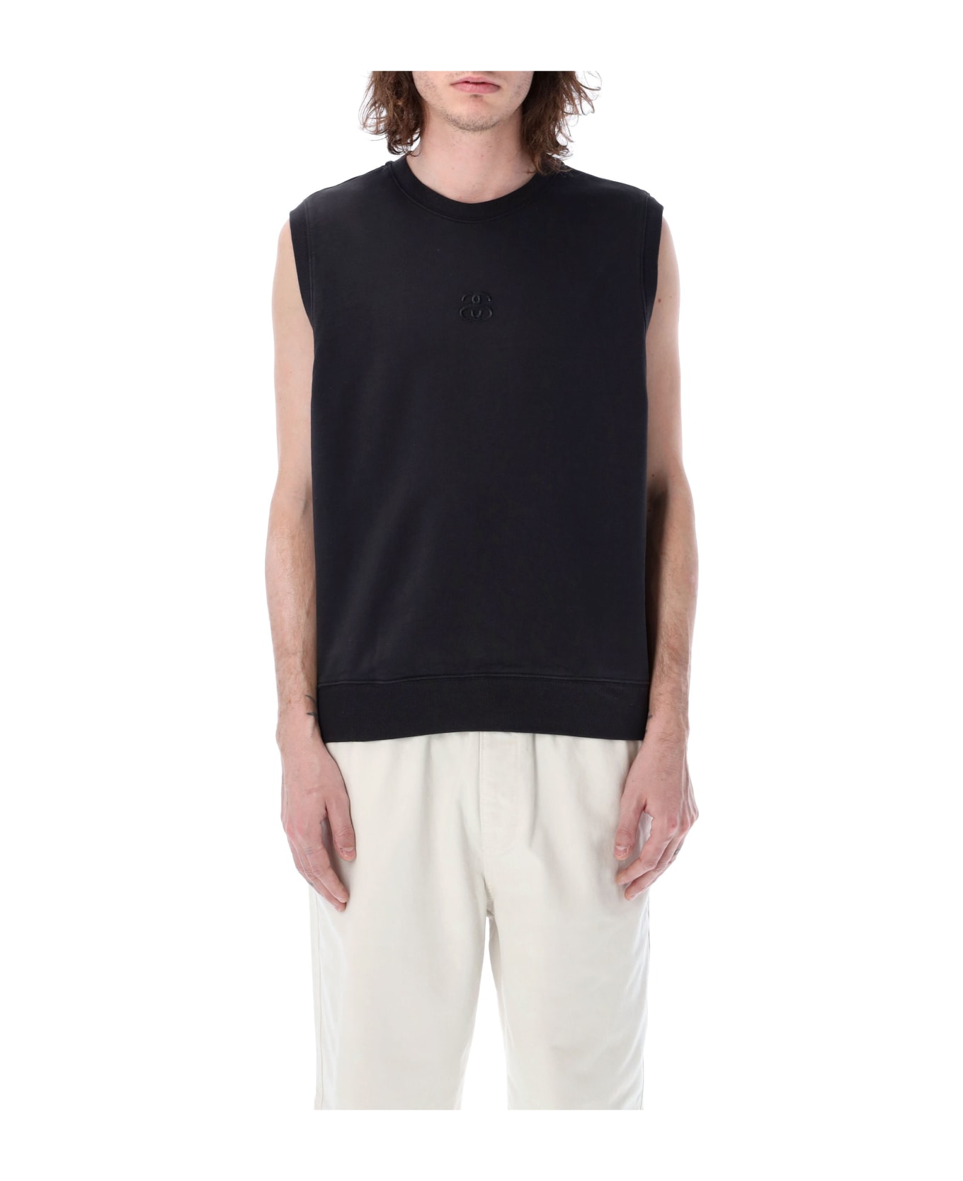 Cotton Ss-link Fleece Vest By Stüssy. Featuring: Ribbed Crew Neck Sleeveless 'ss' Link Chest Embroidery Rib Trims The Model Is 1,90 M Tall And He's Wearing Size L