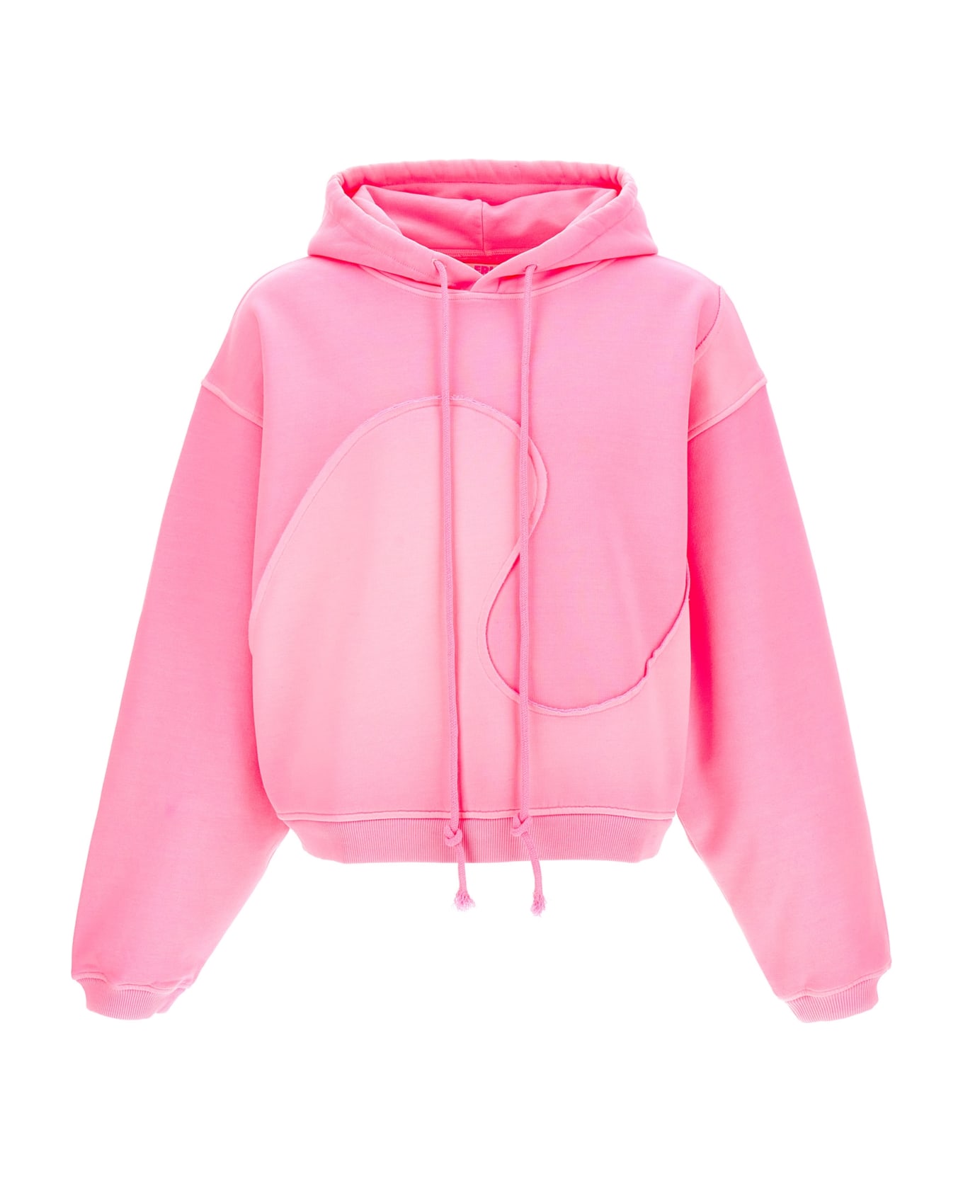 Cotton hoodie with visible stitching, long cuffed sleeves.