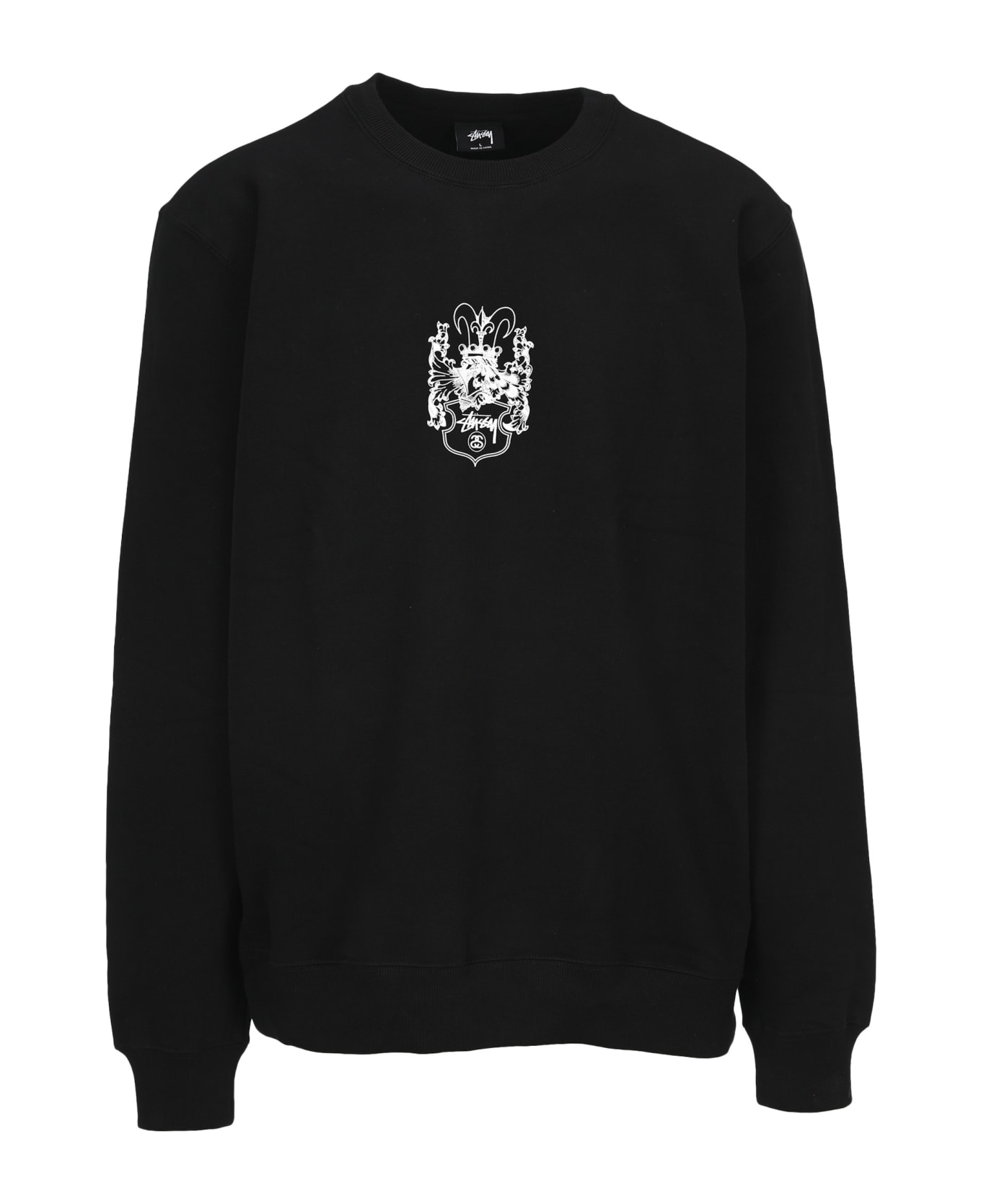 Black Cotton Printed Sweatshirt By Stussy. Featuring: - Ribbed Round Neck; - Logo Print To The Front; - Slogan And Graphic Print To The Back; - Long Sleeves; - Ribbed Hem And Cuffs.