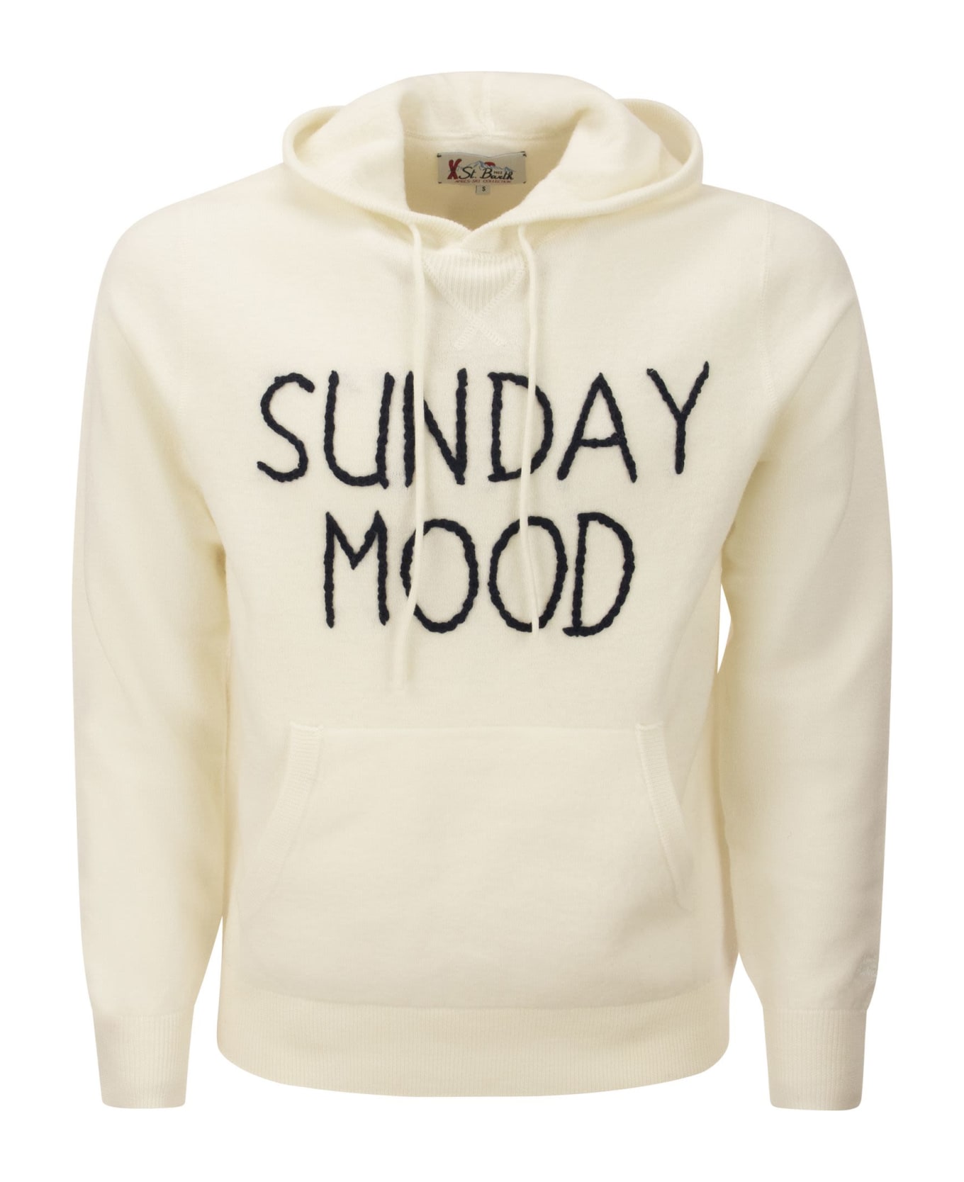 For a sporty and unique look, choose Mc2 Saint Barth, the men's merino wool jumper with Sundy Mood front print. - Hooded - Long sleeves - Ribbed collar and cuffs - Regular fit DESIGNER ID: JAK0002 01646C Composition: 100% Merino Wool