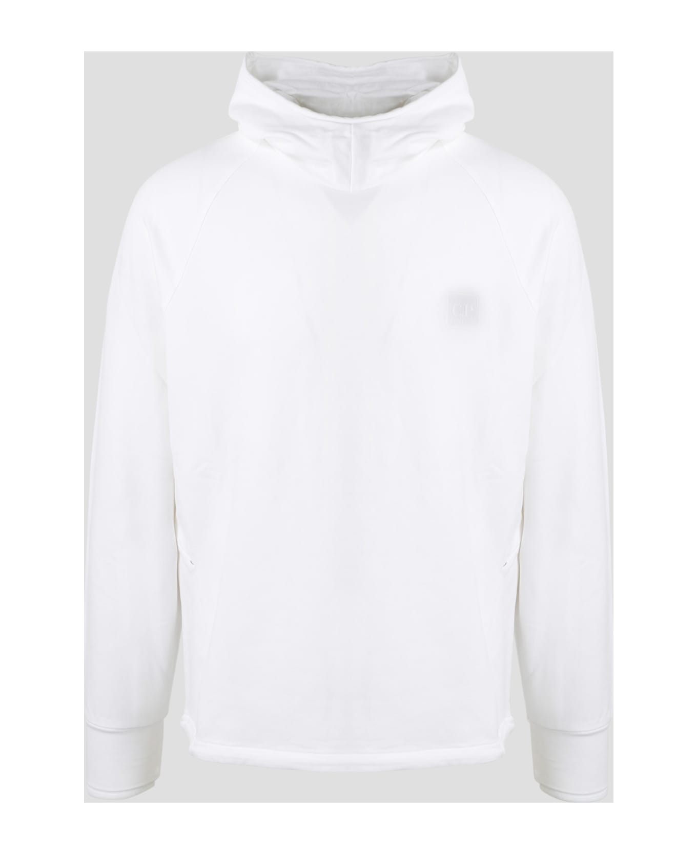 C. P. Company jersey sweatshirt, featuring Metropolis Series Badge on chest. - SS23 - The Metropolis Series Collection - Fixed hood - Raglan sleeves - Hidden zip pocket on left hip - Gaiter on cuffs - Rounded bottom - Made in China - 95% Cotton 5% Elastane