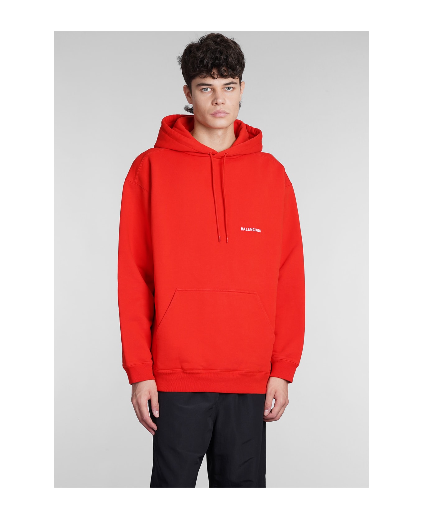 Sweatshirt in red cotton, adjustable hood with laces, kangaroo pockets, long sleeves, logo on chest, ribbed cuffs and bottom, 100% cotton, Made in Portugal, Model is 1. 83 and wears size M