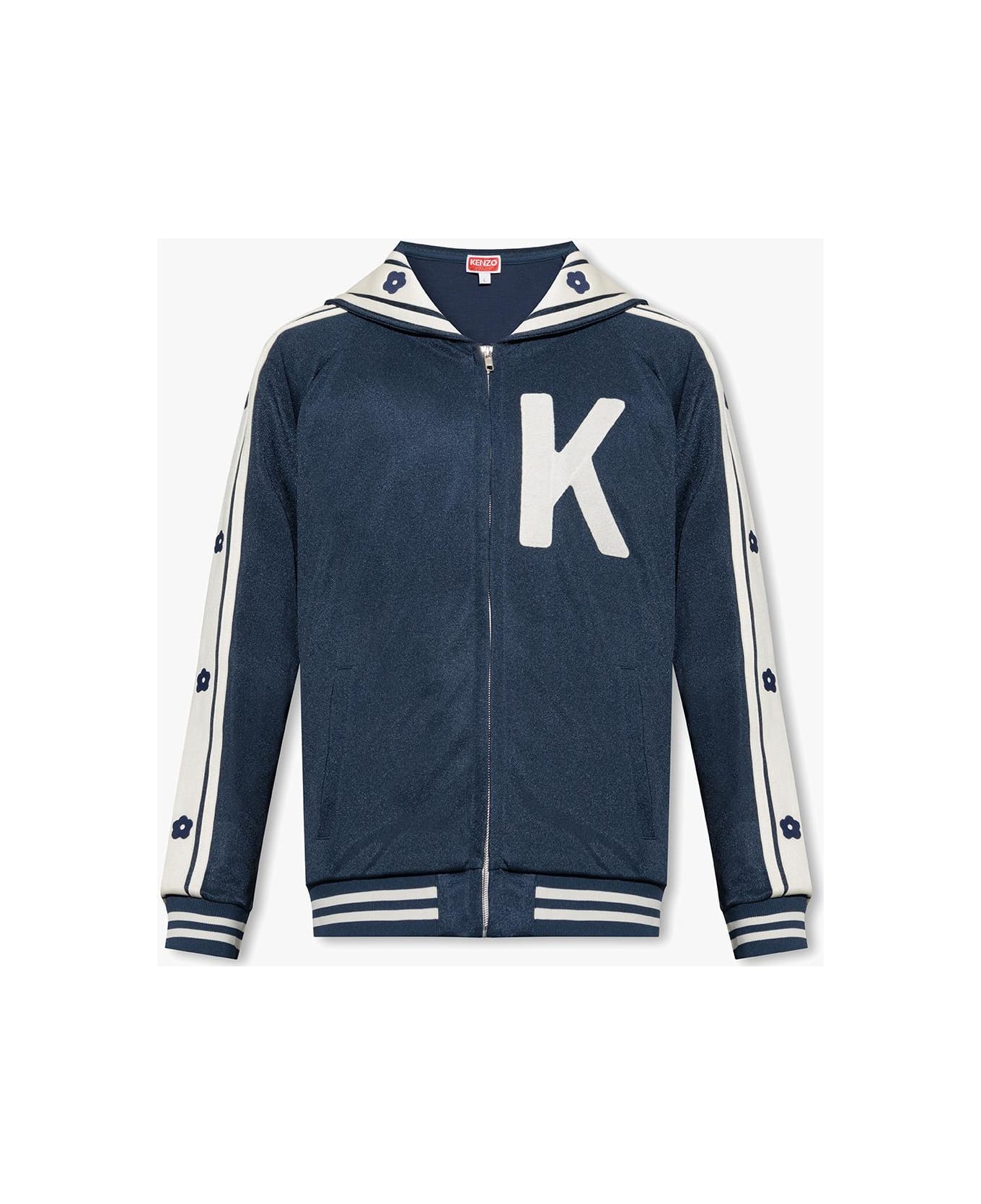 Navy and white sweatshirt from Kenzo. Fastened with a zip, this design features a logo embroidery, the brand's signature elephant motif, decorative collar and ribbed trims at the hem and cuffs.