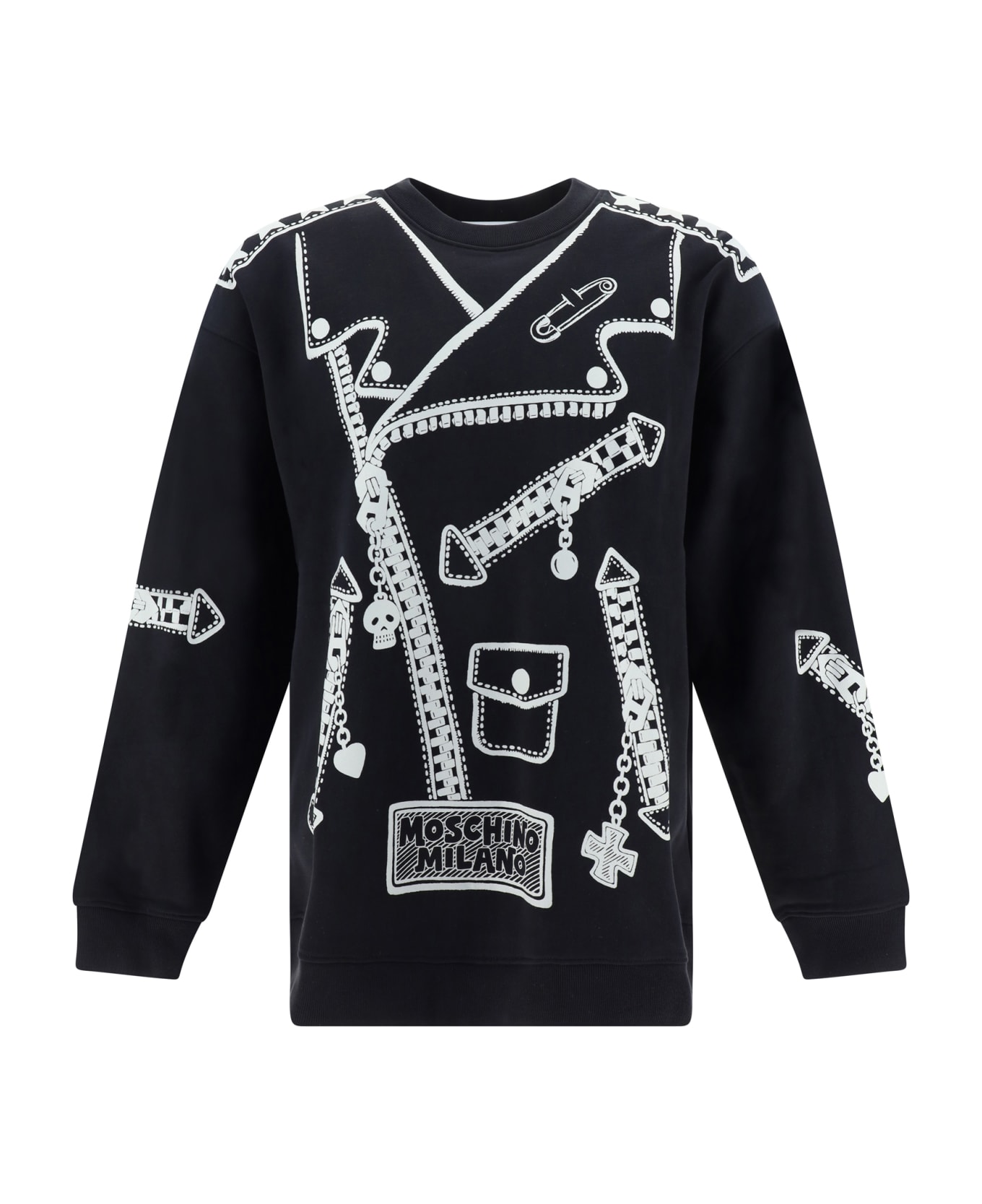 Cotton sweatshirt by moschino, ribbed crew neck, contrasting printed graphic and iconic brand monogram on front, ribbed cuffs and hem, monochrome pattern, regular fit. Composition: 100% % Cotton