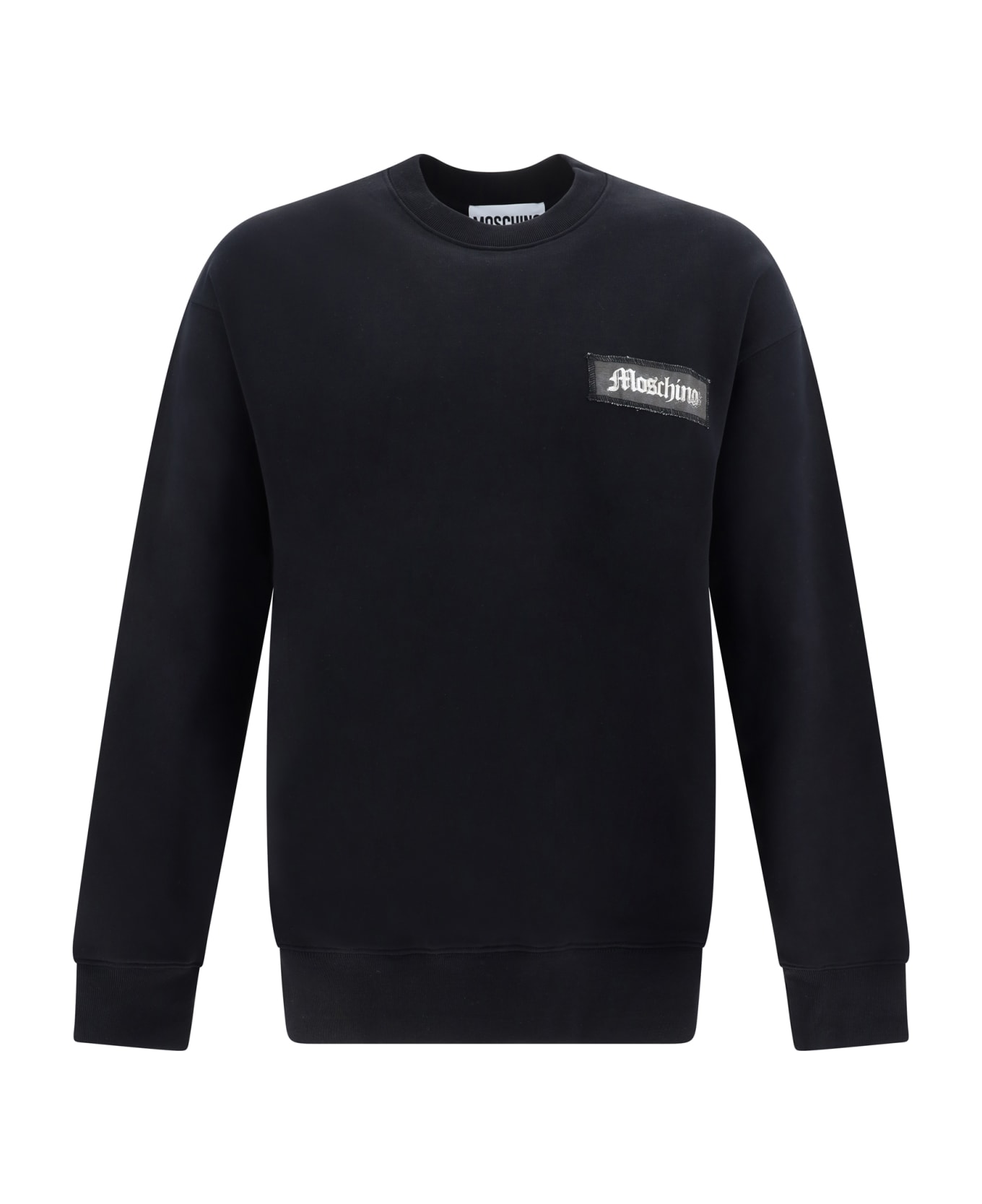 Cotton sweatshirt by moschino, ribbed crew neck, contrasting brand iconic monogram patch applied to front, ribbed cuffs and hem, monochrome pattern, regular fit. Composition: 100% % Cotton