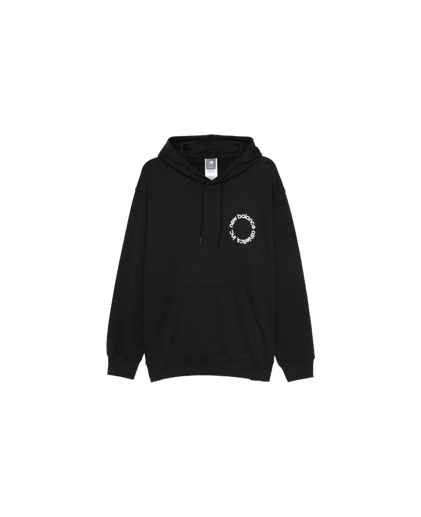 black front and back circular-logo print kangaroo pocket long sleeves hooded neckline cotton-blend