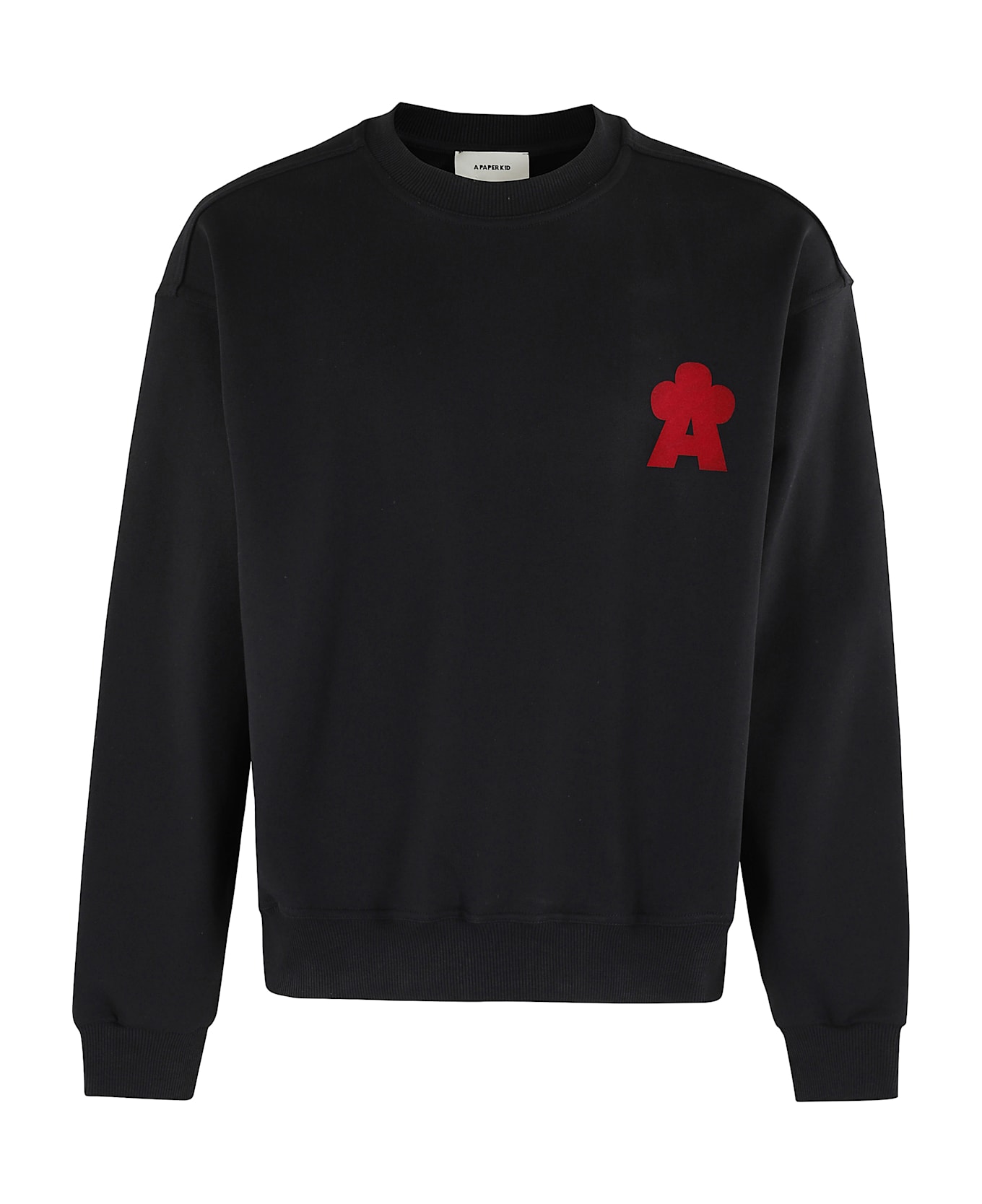 Velvet Logo Sweatshirt - A Paper Kid - Black color - Gauzy interior - Crewneck - Long sleeve - Velvet logo on chest - Loose fit
