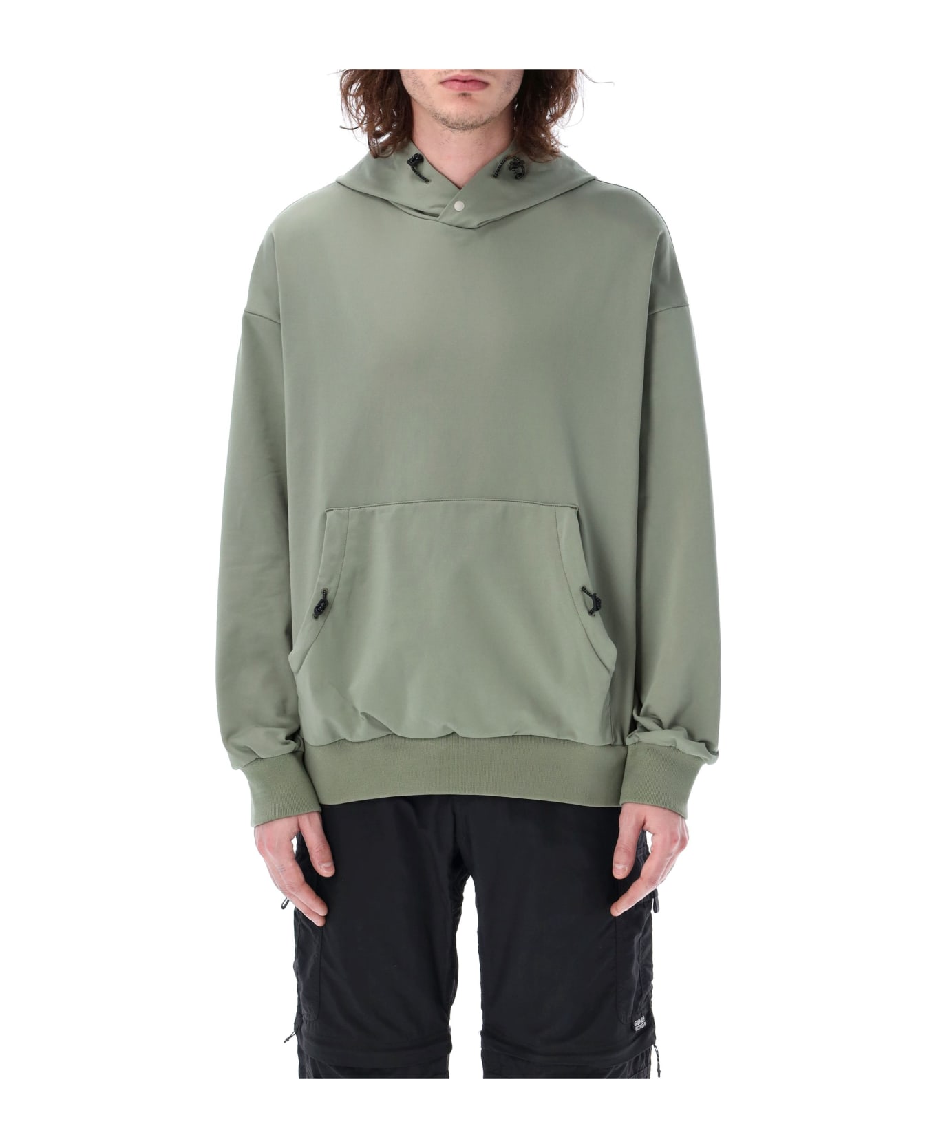 Tech Hoodie By Gramicci. Featuring: Drawstring Hood Long Sleeves Dropped Shoulders Kangaroo Pocket Rib Trims The Model Is 1,90 M Tall And He's Wearing Size M