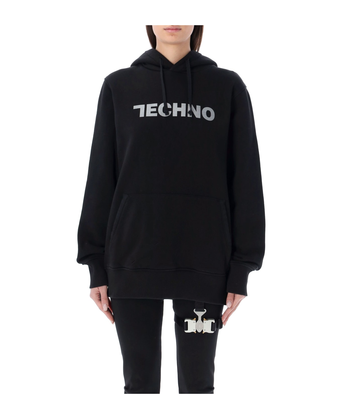 Cotton Techno Hoodie By 1017 Alyx 9sm. Featuring: Drawstring Hood Collection "techno" Graphic Print On The Front Long Sleeves Kangaroo Pocket Rib Trims The Model Is 1,72 M Tall And She's Wearing Size S The Model Is 1,90 M Tall And He's Wearing Size M