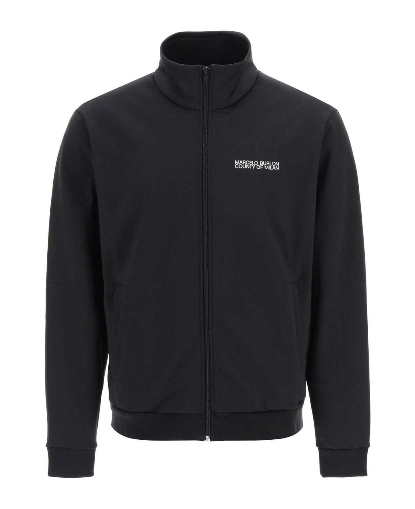 Marcelo Burlon track jacket in technical fabric, enriched by chest logo print and rear maxi Tempera Cross logo print. Full-length zip closure, ribbed cuffs and hem. Two front welt pockets with press stud. Regular fit. The model is 185 cm tall and wears a size L.