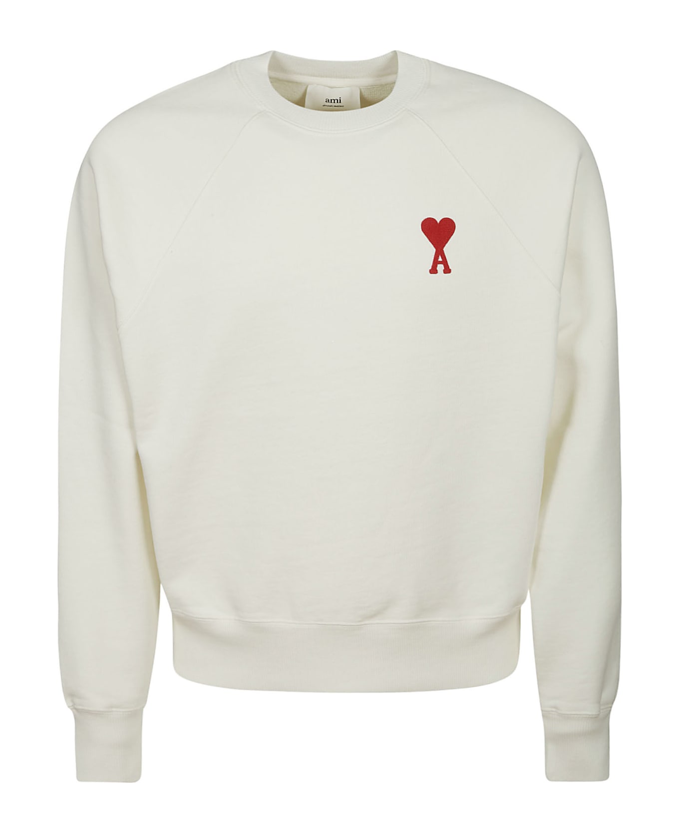 AMI White cotton sweatshirt, logo on the chest, ribbed edges. Composition: 100% Cotton