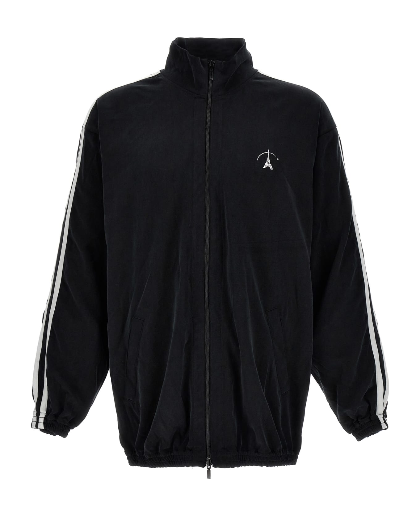 Cupro blend sweatshirt with zip closure, logo embroidery, contrasting side bands, logo embroidery, elastic waistband and cuffs. Composition: 58% polyester 42% cupro