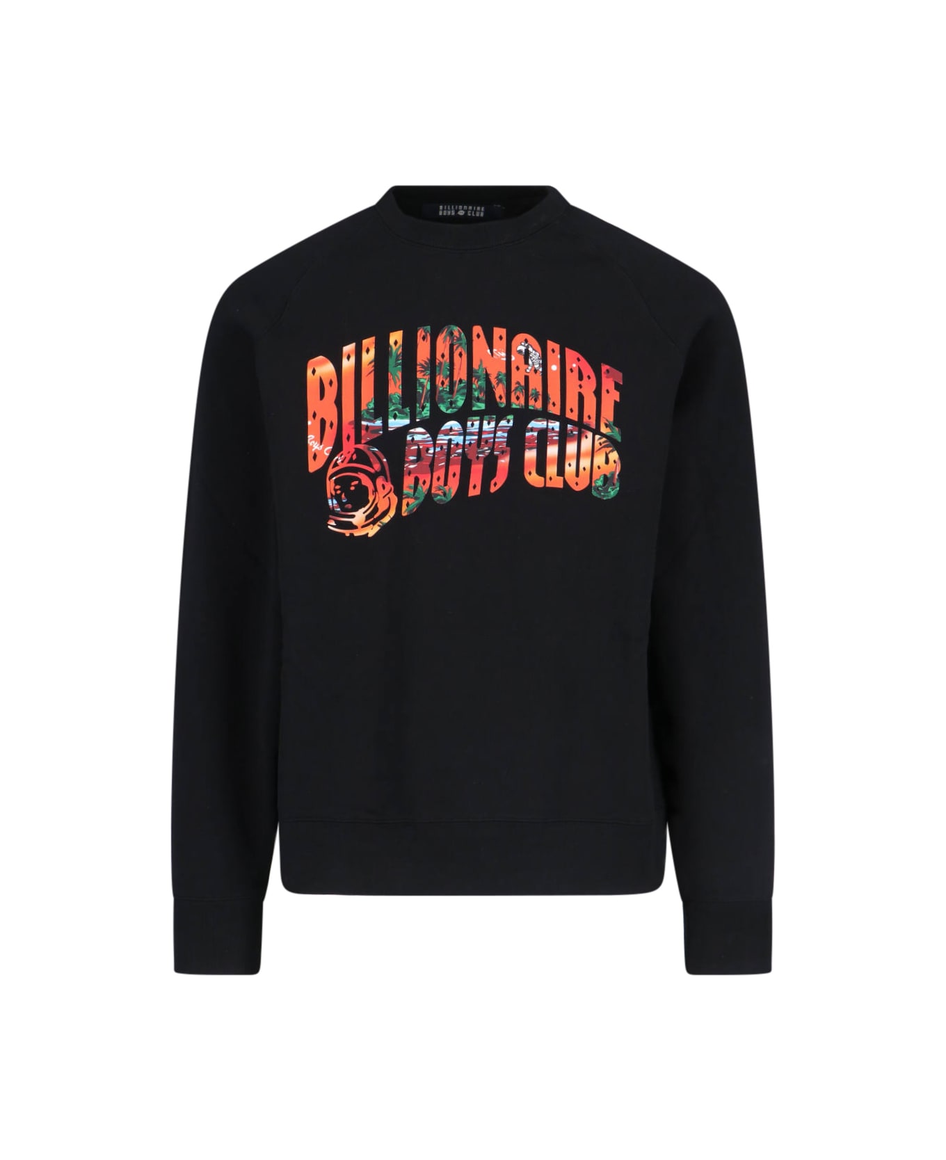 Billionaire Boys Club Tropical Island Fill Arch sweatshirt in black cotton with crewneck, multicolor logo print on the chest, contrasting logo sleeves, orange "Standing Astronaut" logo on the back, ribbed trim, and straight hem.