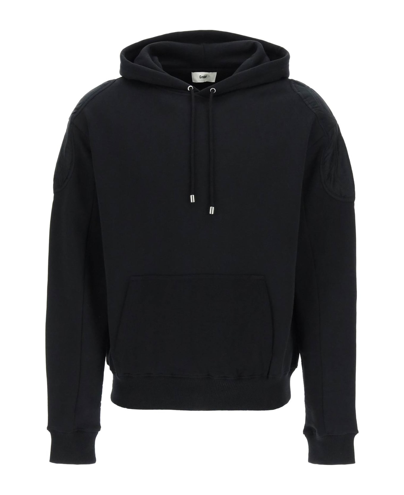 Sweatshirt by Gmbh in brushed-back cotton jersey finished with twill inserts on the sleeves. Provided with drawstring hood and front kangaroo pocket, and finished with stretch ribbed edges. Relaxed fit. The model is 187 cm tall and wears a size L.