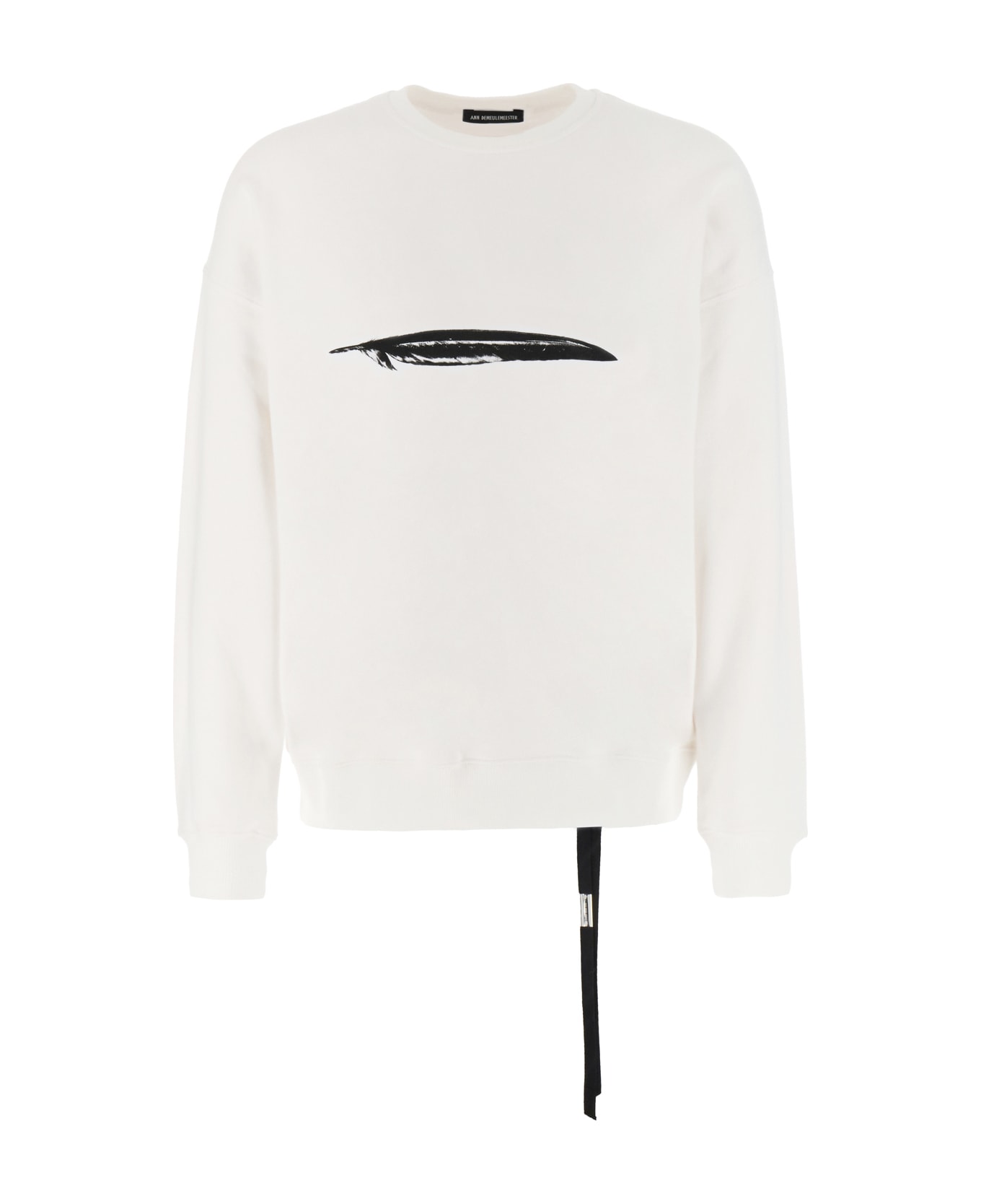 Sweatshirt realized in pure cotton characterized by peculiar contrasting print at the front enriched by detachable contrasting fabric insert on the hemline. -Ribbed crew-neck, cuffs and hemline