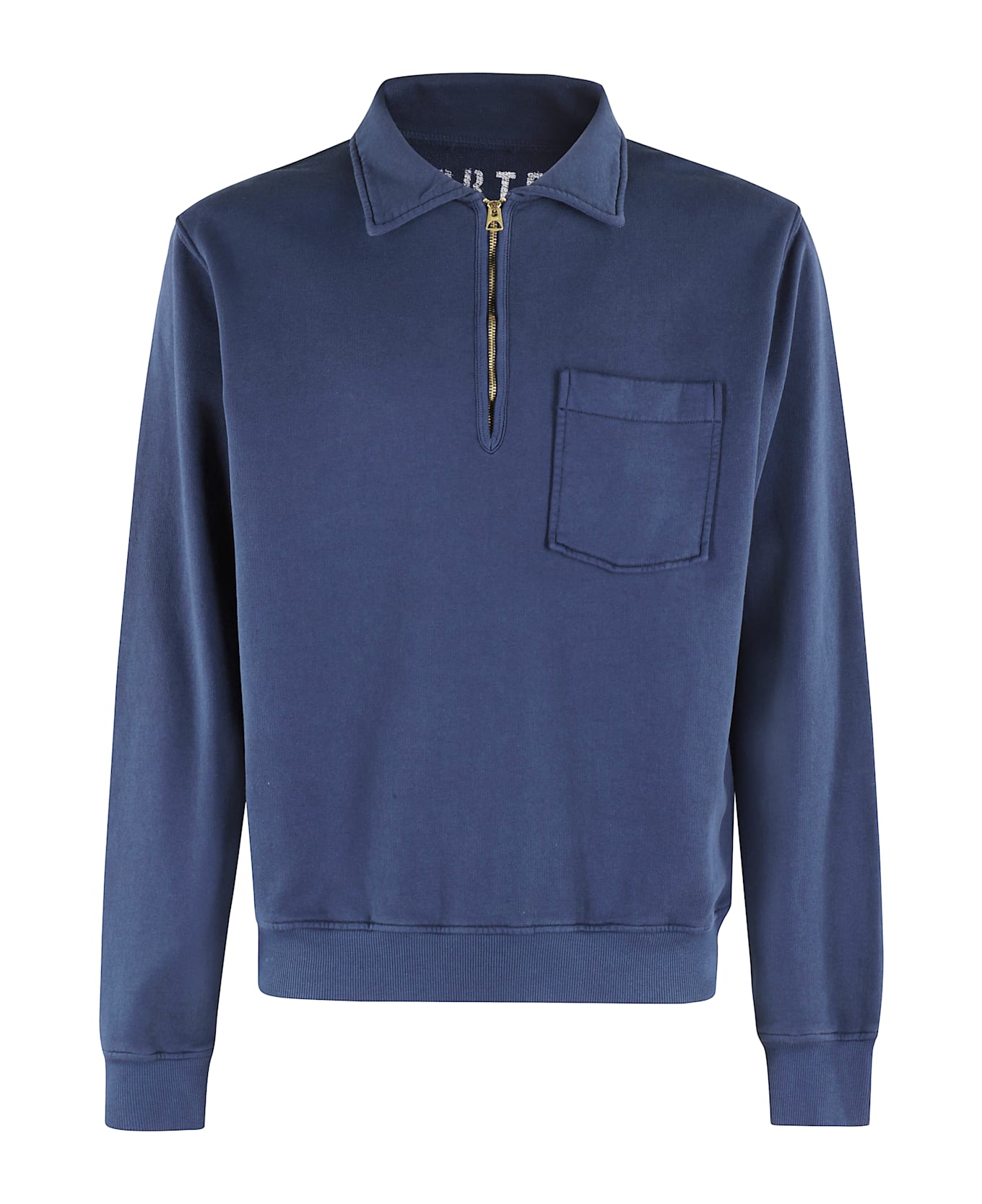 Yale sweatshirt - Fortela - Blue color - Pointed collar with half zipper - Patch pocket on chest - Ribbed piping - Regular fit