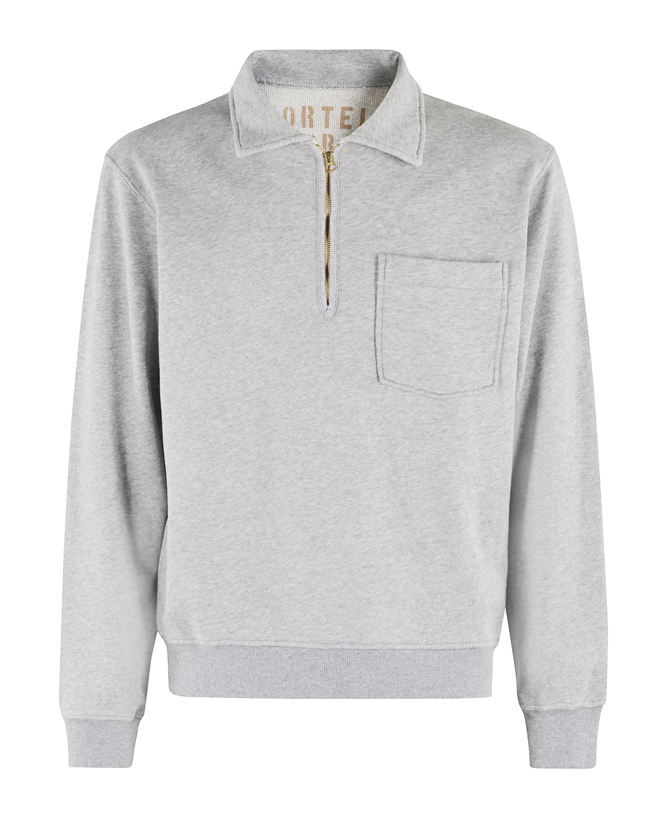 Yale sweatshirt - Fortela - Gray color - Pointed collar with half zipper - Patch pocket on chest - Ribbed piping - Regular fit
