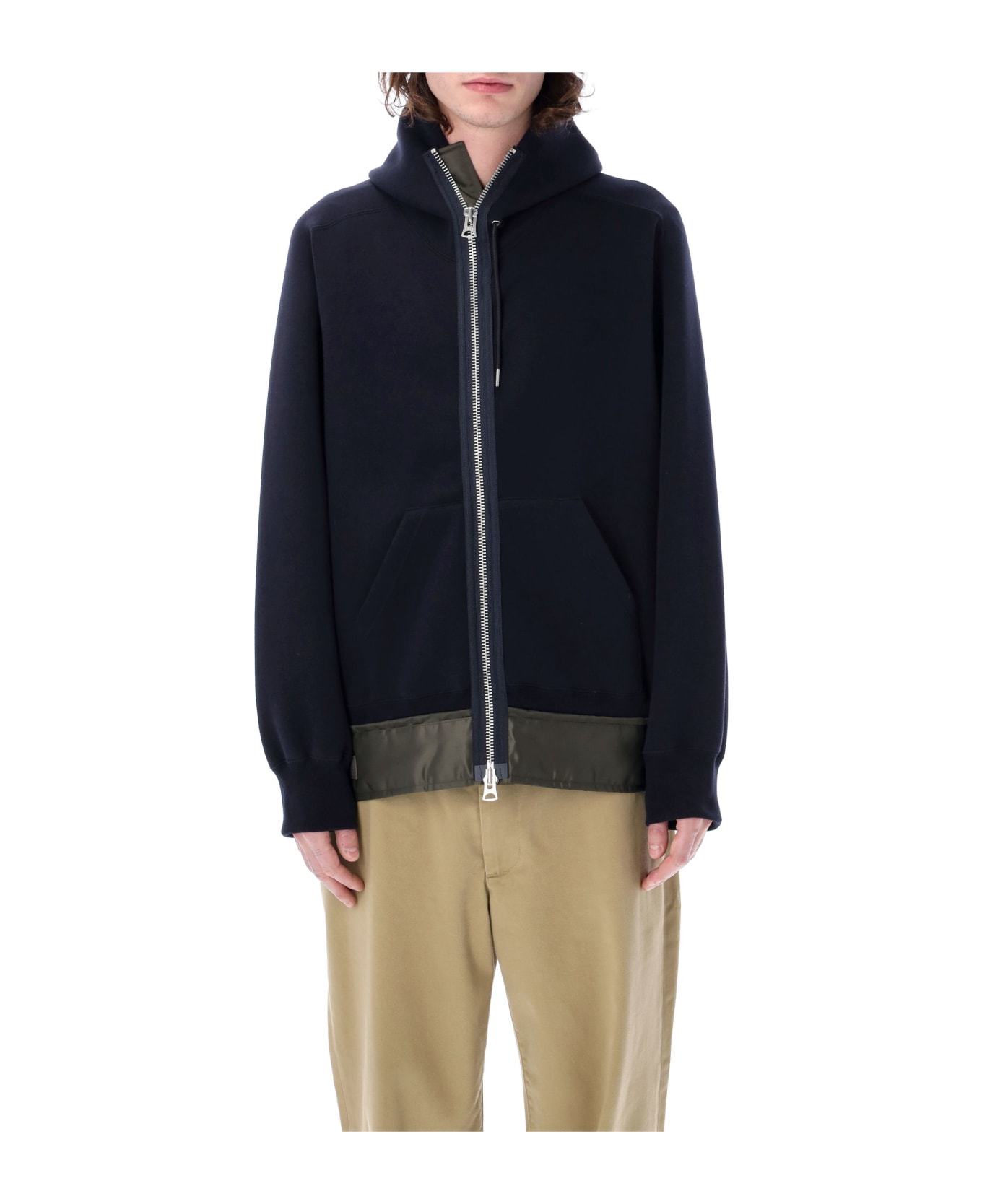 Cotton-blend Zipped Hoodie With Nylon Details By Sacai. Featuring: Drawstring Hood Full Zip Fastening Nylon Detail Along Fastening Long Sleeves Slit Pockets Ribbed Cuffs Nylon Band At Hem With Buckled Straps Signature Side Splits With Press Studs Model Is 1,90 M Tall And He Is Wearing Size 4