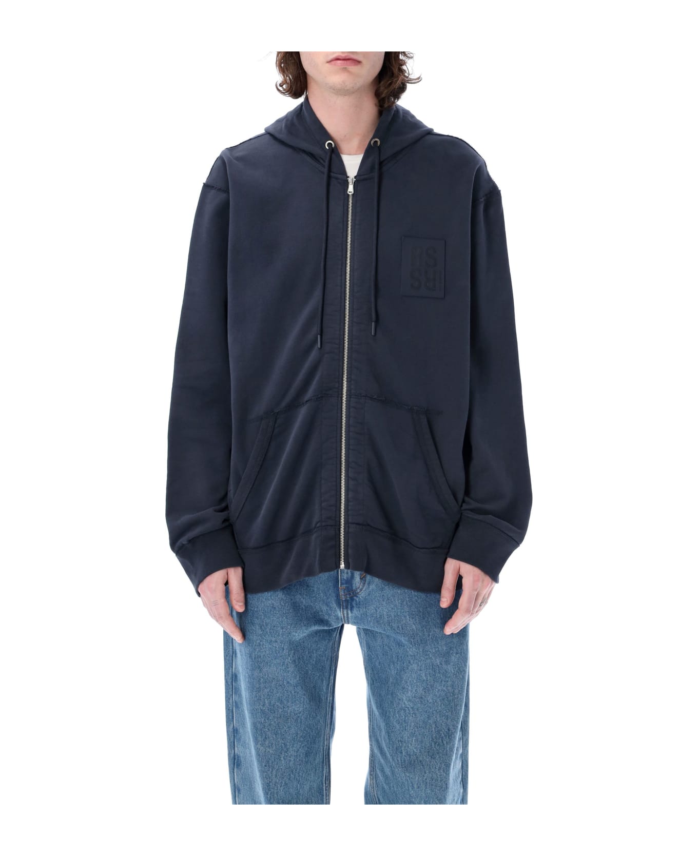 Cotton Zipped Hoodie With Rs Hand Signs On Sleeves By Raf Simons. Featuring: Drawstring Hood Full Zip Closure Rs Embossed Patch At Left Chest Slit Pockets Long Sleeves With Graphic Print Ribbed Cuffs And Hem Frayed Trim Model Is 1,90 M Tall And He Is Wearing Size L