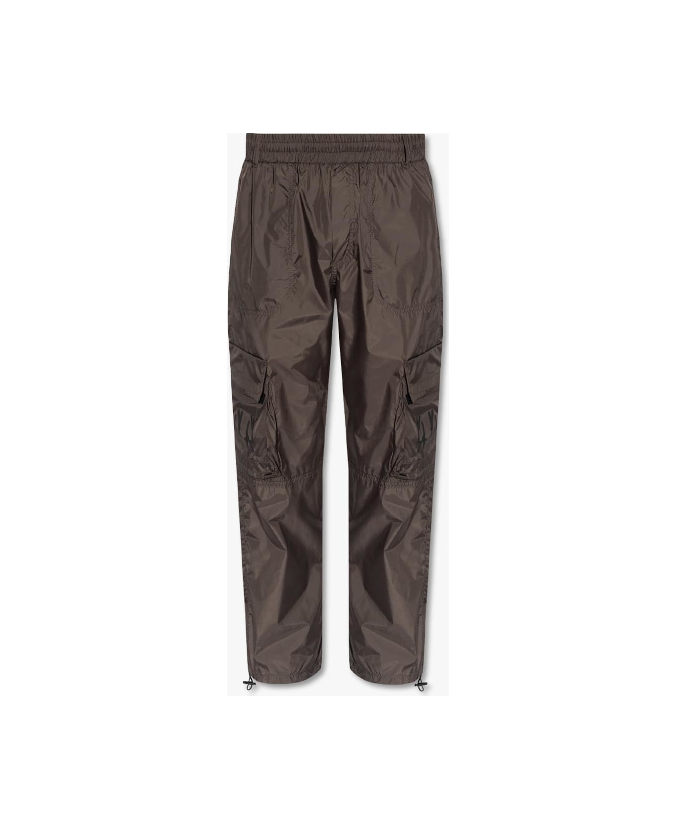 Dark grey cargo track pants from 44 Label Group. Accentuated with a branded black velcro patch, this pair features a drawstring waistband and cuffs, three slip pockets and two flapped pockets.
