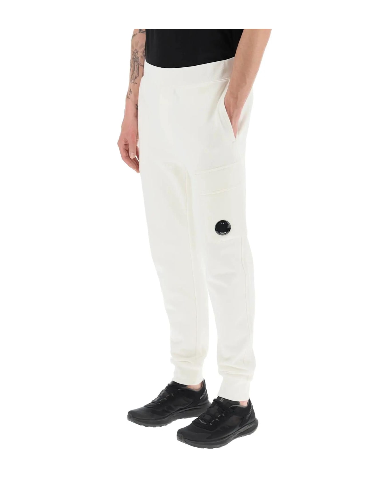 C. P. Company cotton fleece sweatpants boasting a tapered cut finished with ribbed cuffs and elasticated waistband. Side seam pockets and a cargo pocket with C. P. Company Lens detail complete the look. The model is 187 cm tall and wears a size L.