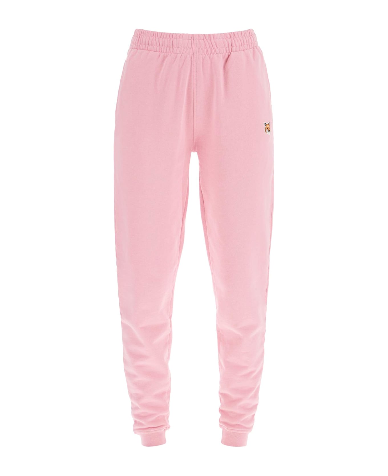 Unisex Maison Kitsuné joggers made of pure cotton brushed jersey with the iconic Fox Head embroidery on the side. They feature an elasticated waistband with internal drawstring, side pockets, a back pocket and ribbed cuffs. The model is 182 cm tall and wears size L. The model is 177 cm tall and wears size XS.
