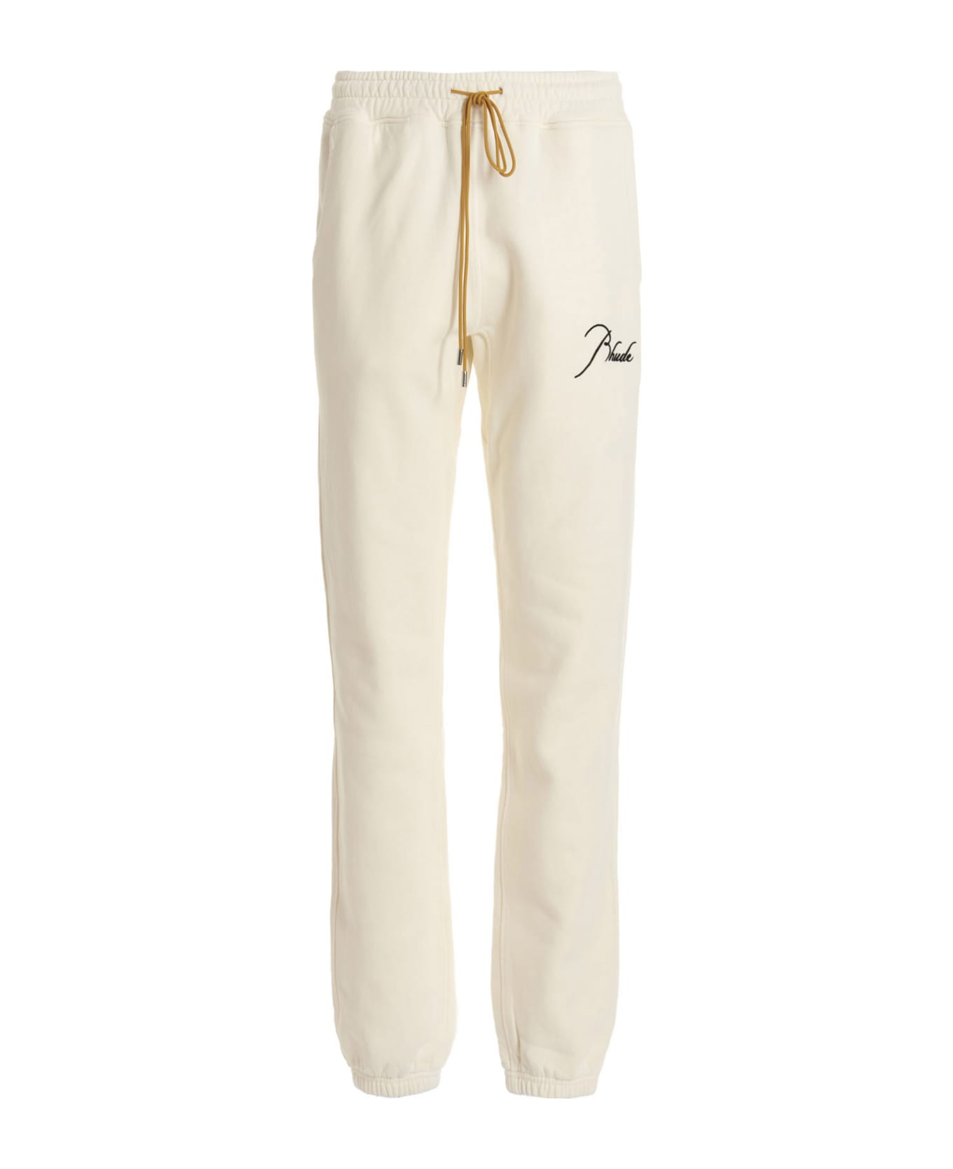Cotton joggers with logo embroidery, a drawstring and elastic at the waist, pockets and elastic leg bottoms.