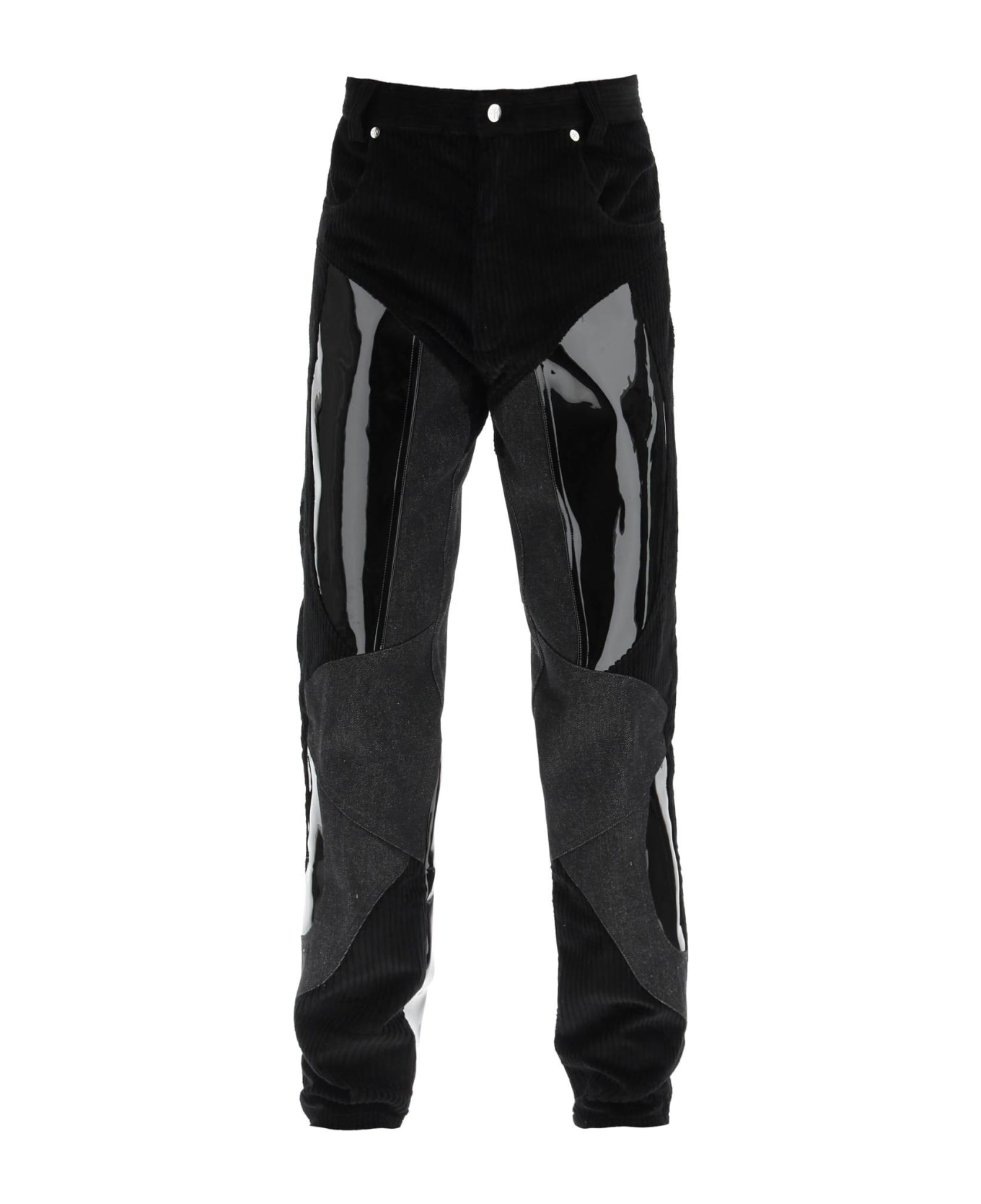 Patchwork Pants In Denim, Corduroy And Vinyl