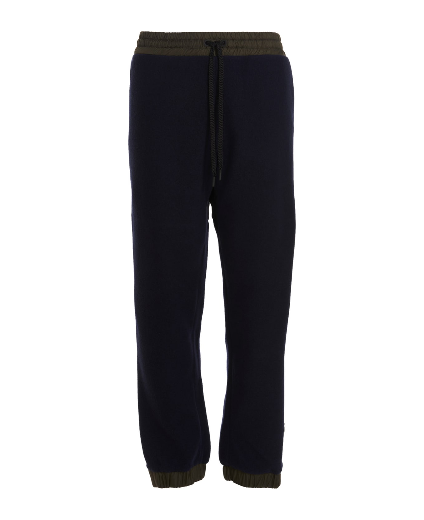 Wool fleece joggers, rainwear waist, ankles, patches and back inserts, elastic and drawstring waistband, slanted pockets on the sides, patch pockets on the back with snap buttons, adjustable cuffs with buckles and snap buttons.