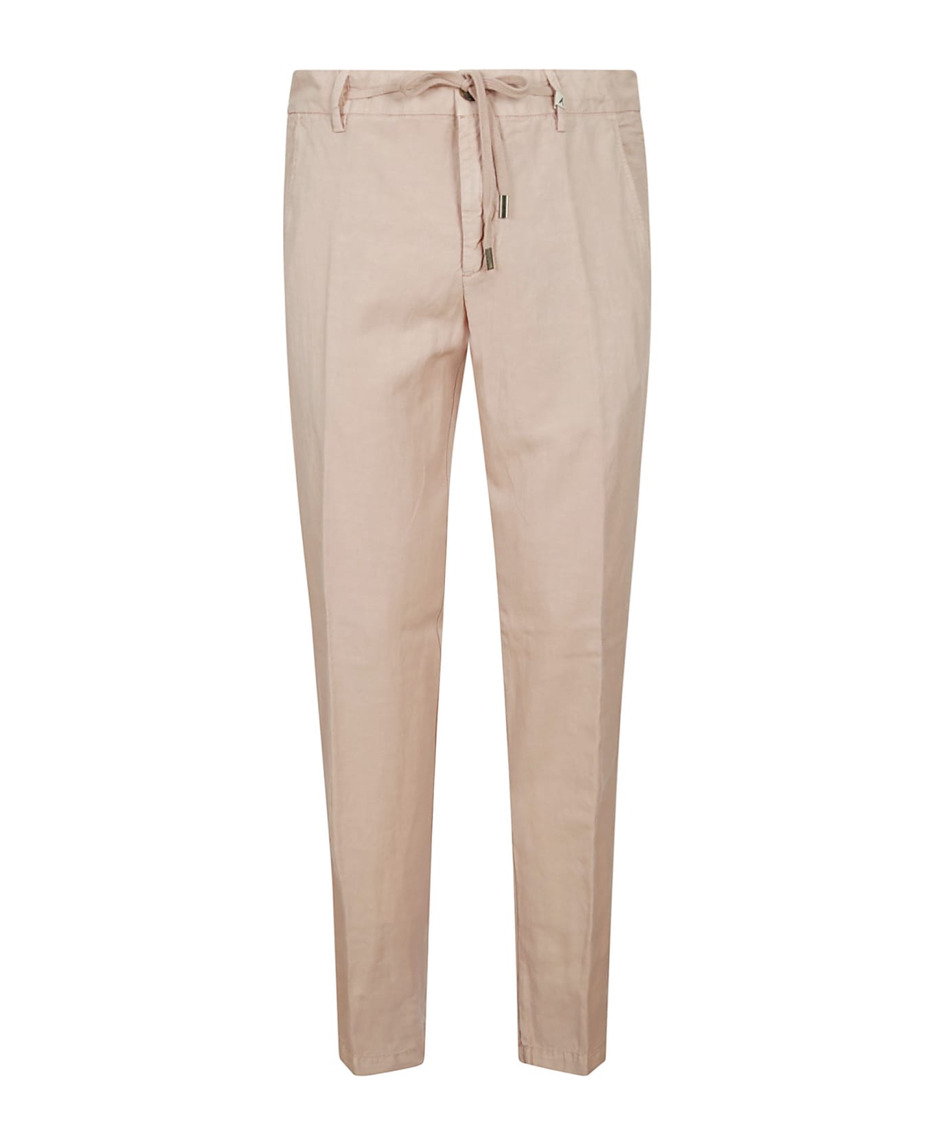 Myths Pink cotton and linen blend trousers, drawstring waist, side pockets, welt pockets on the back.