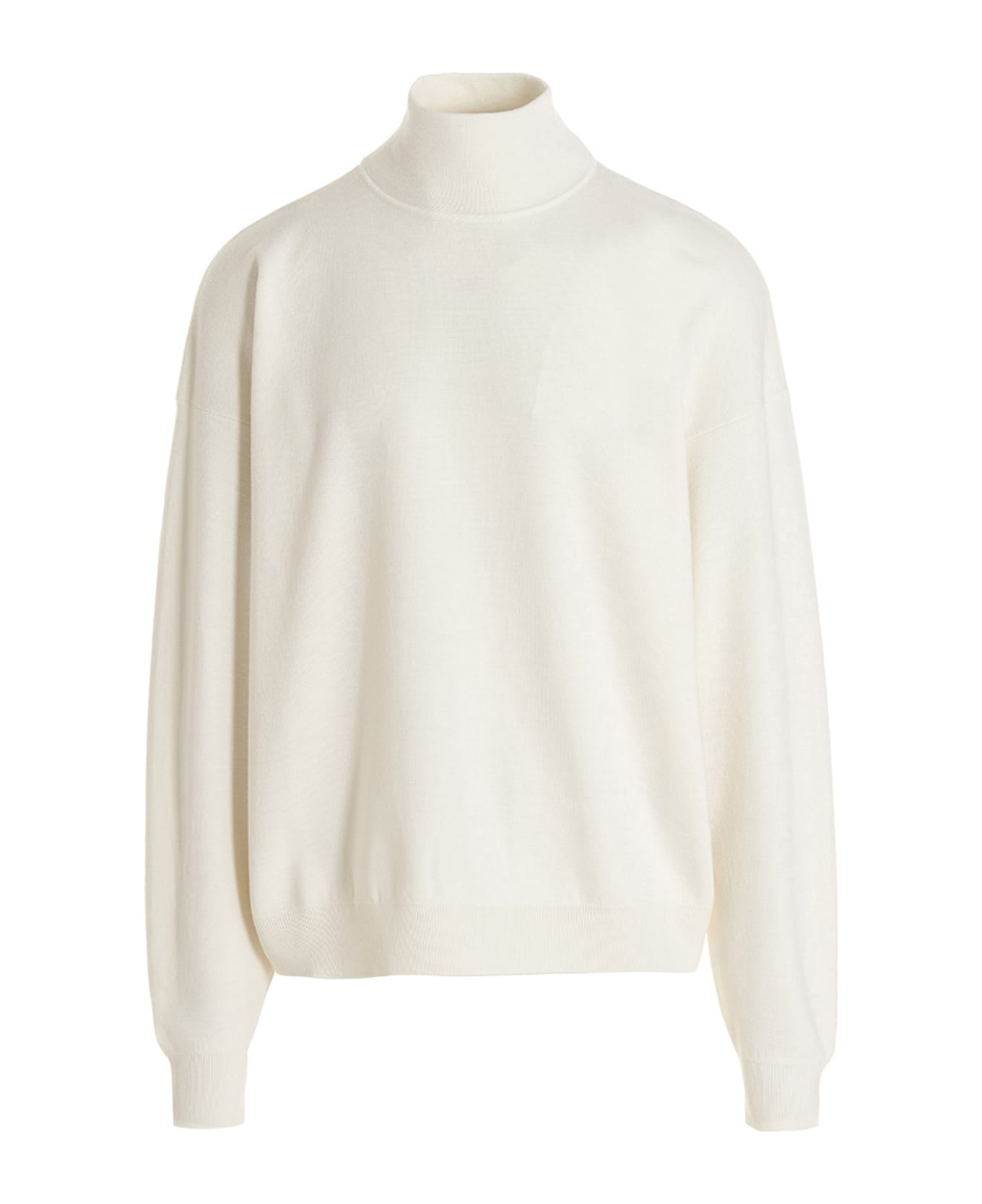 Wool sweater with polo neck, long cuffed sleeves and a leather logo at the back.