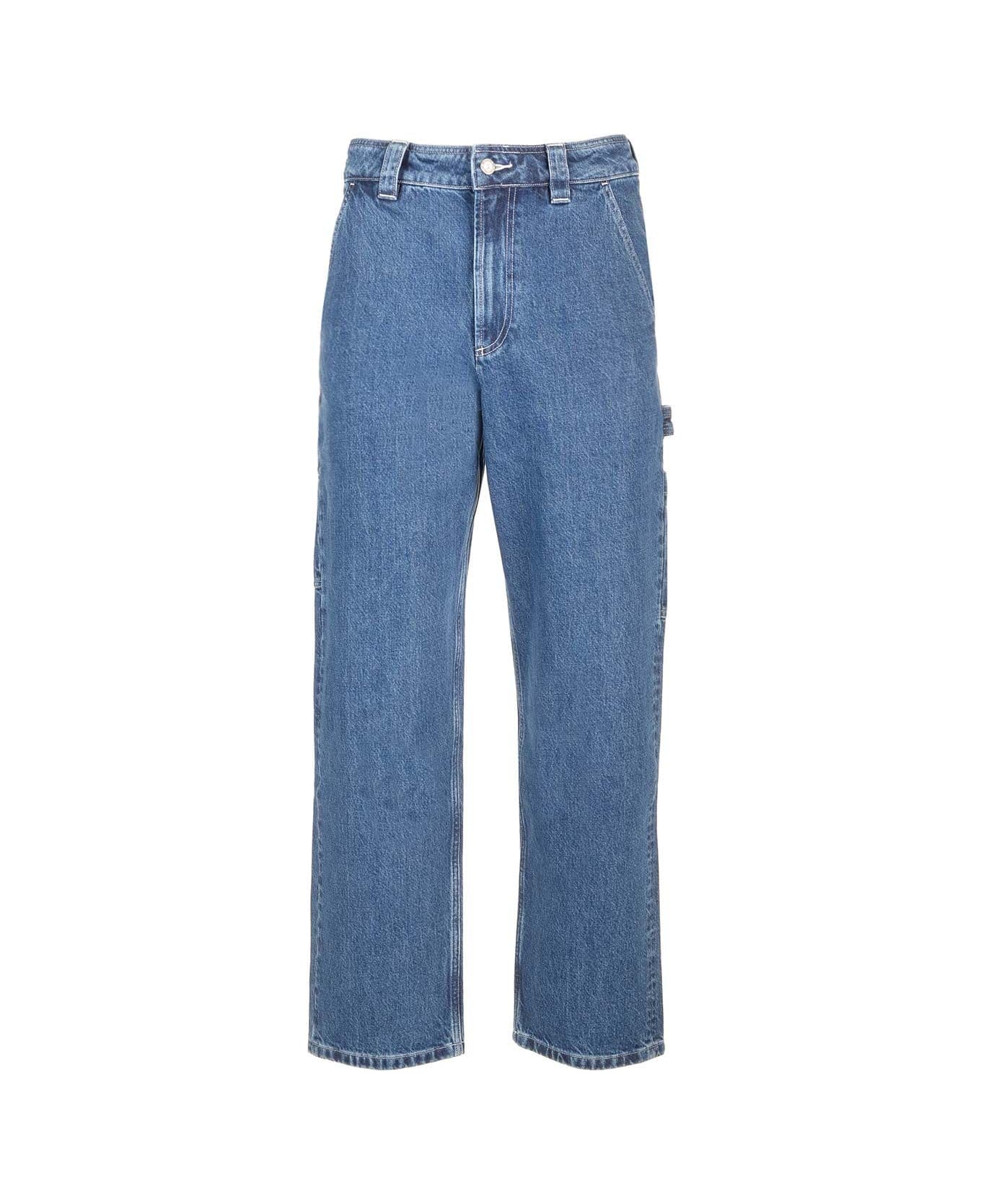 "Fergus" jeans in medium blue organic cotton from A. P. C. , featuring a straight leg,an  high waist, a strap with loops and a multi pocket design.