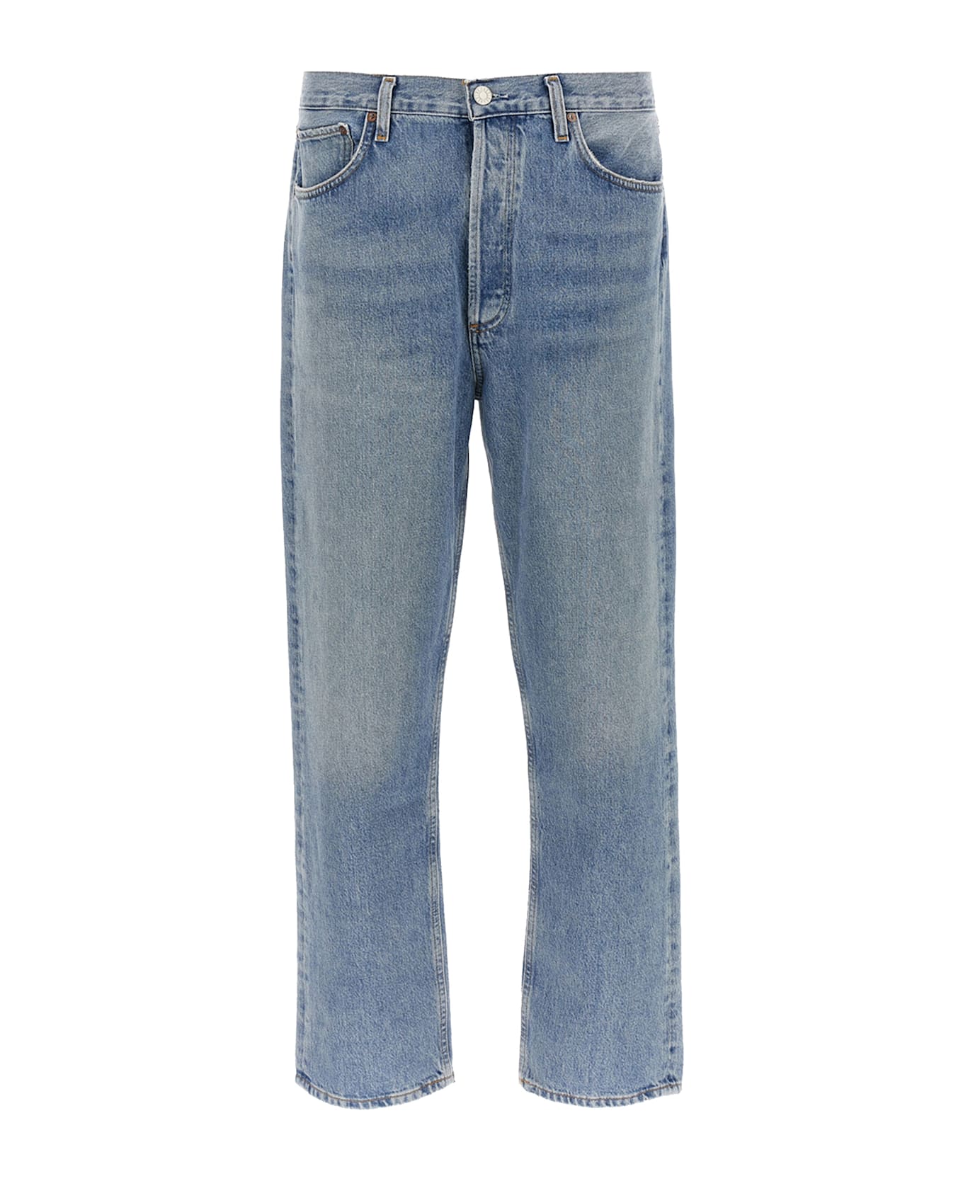 '90's' used-effect delavé cotton denim jeans, button closure, five pockets, mid waist, straight leg. SUSTAINABLE: This product is made of organic cotton. Composition: 100% cotton
