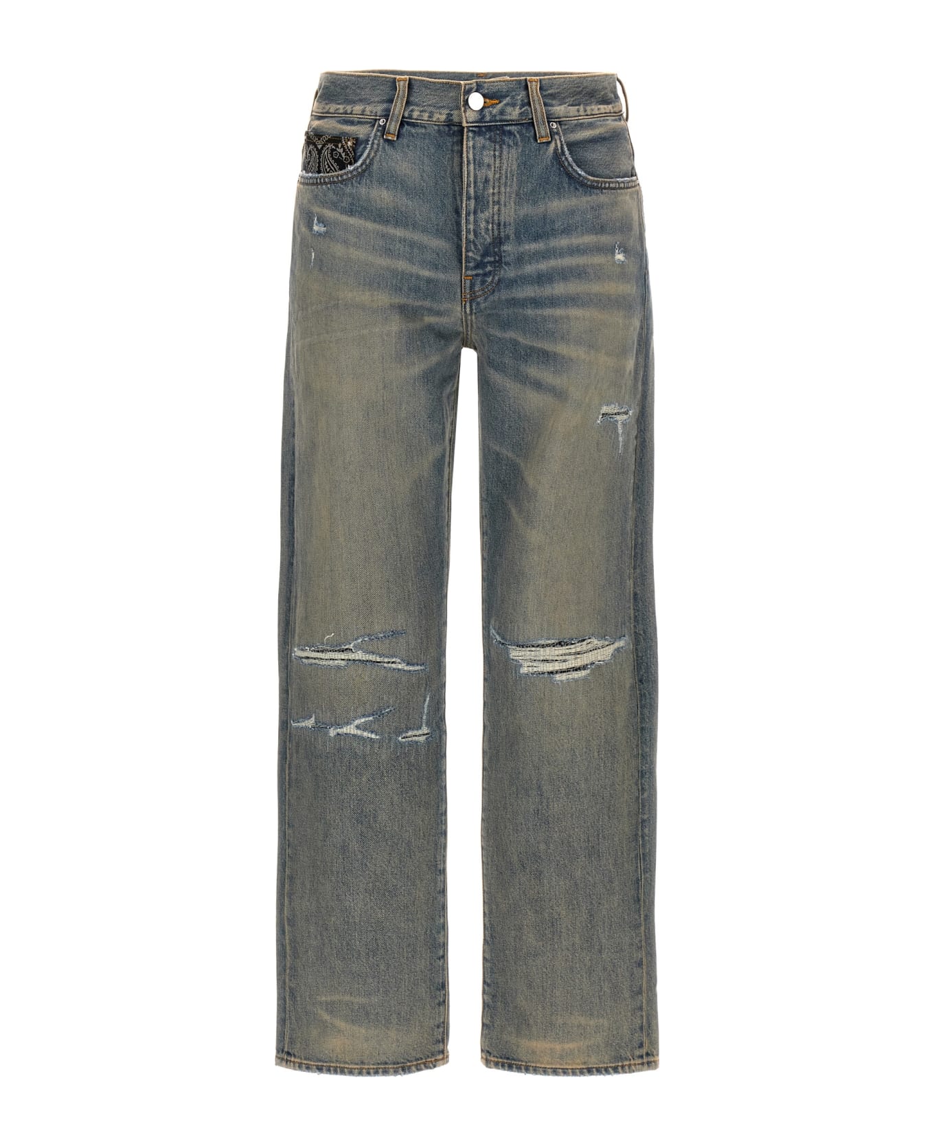 'Bandana Repair' cotton denim jeans with used-effect details and bandana inserts, button closure, five pockets, straight leg.