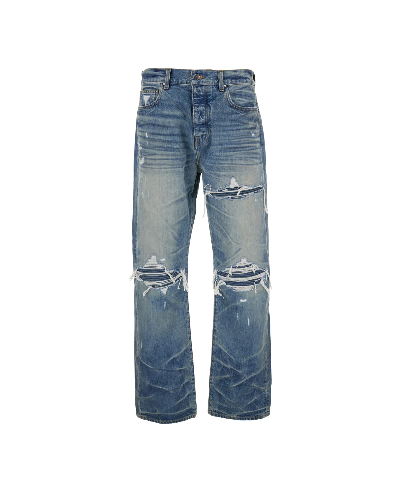 Jeans Blue Belt loops Front button and zip closure Ripped details on the front Logo patch on the rear Straight hem Five-pocket style Denim Regular fit