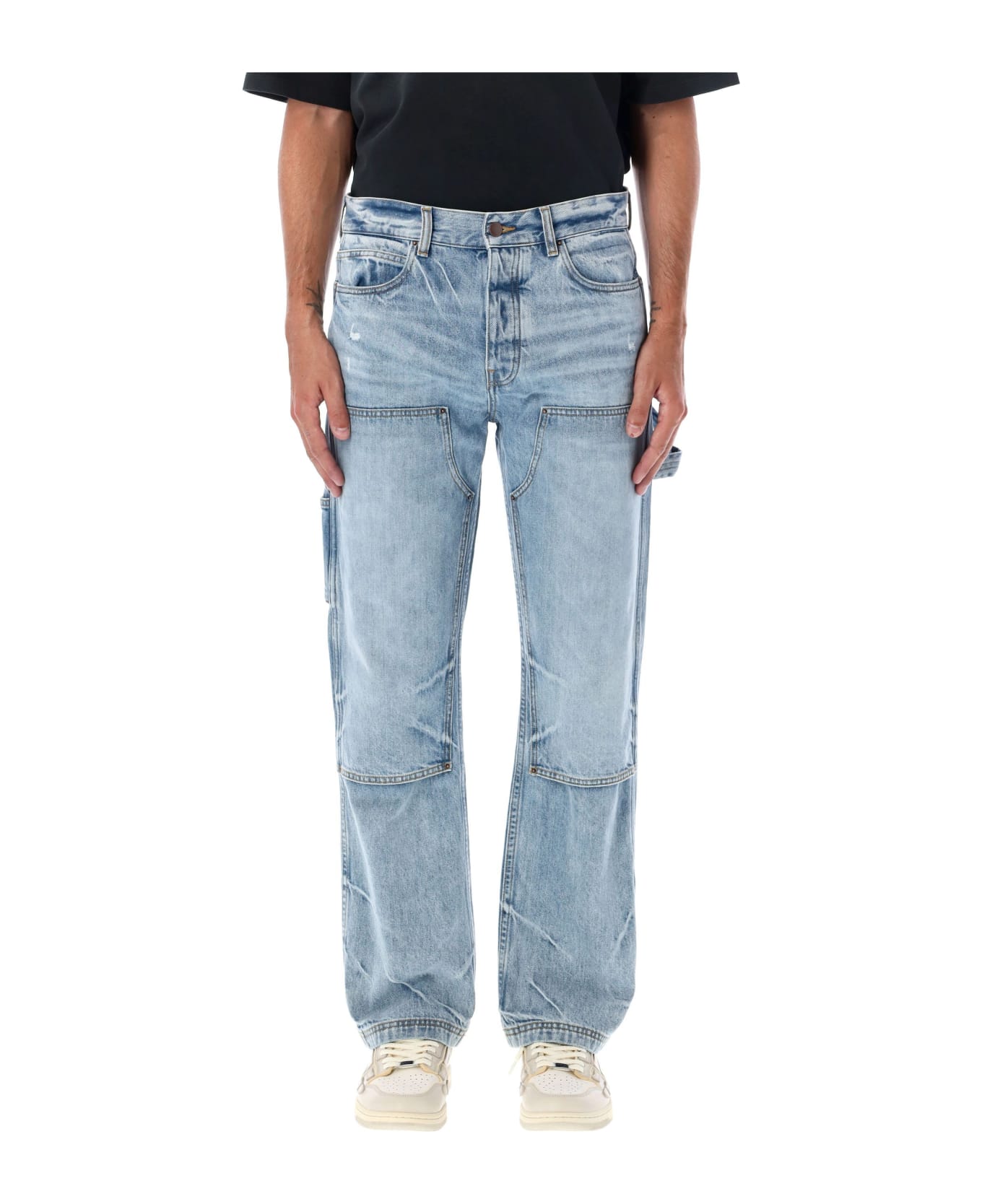 Carpenter Jeans By Amiri. Featuring: Denim Fabric Relaxed Fit Front Zip And Button Closure Distressed Detailing Throughout Multiple Pockets Carpenter Loop Light Wash Finish Reinforced Stitching Model Is 1,90m And Wears Size 32.