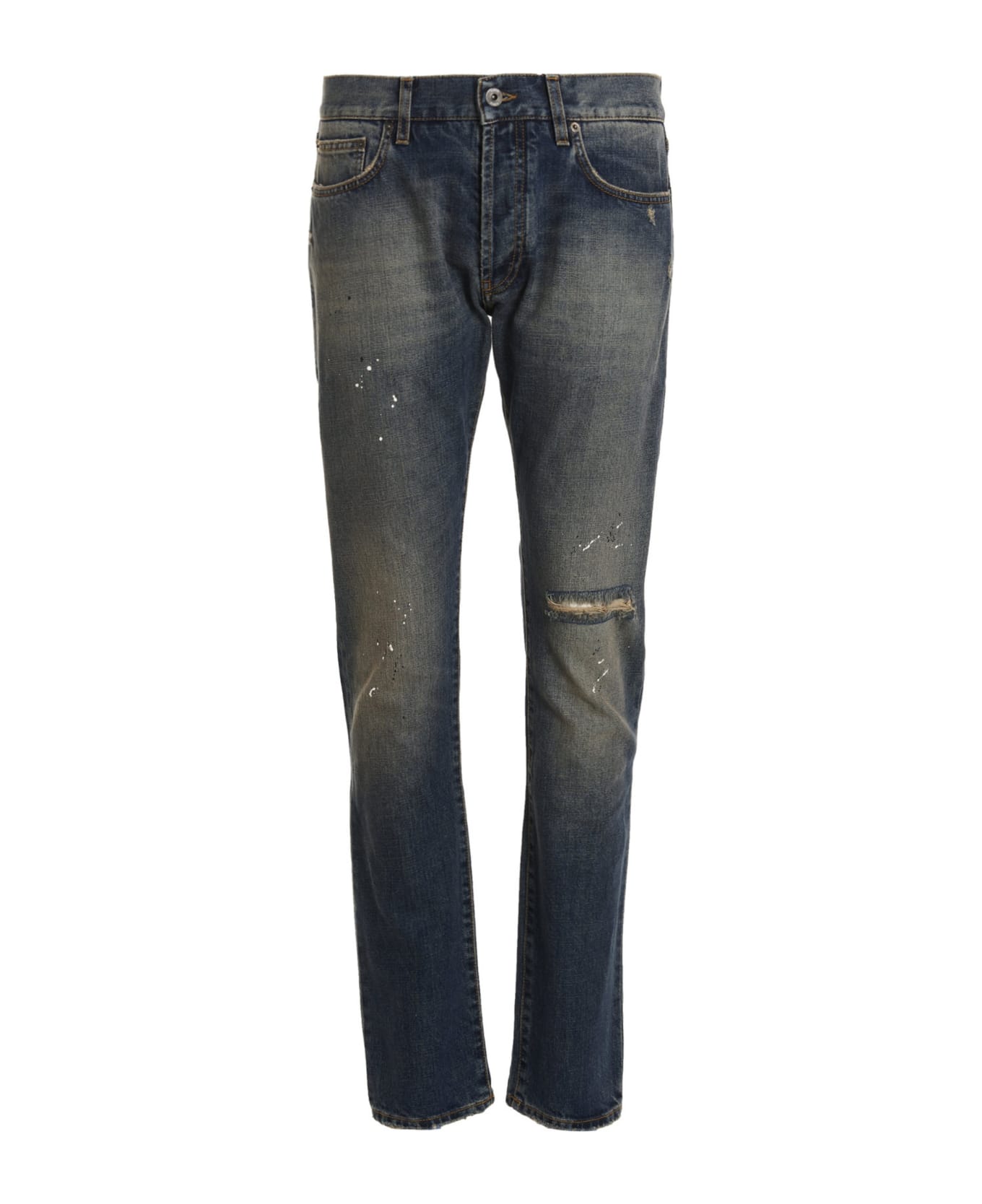 'Cheawick' cotton denim jeans with button closure, five pockets, and used-effect details and paint details.