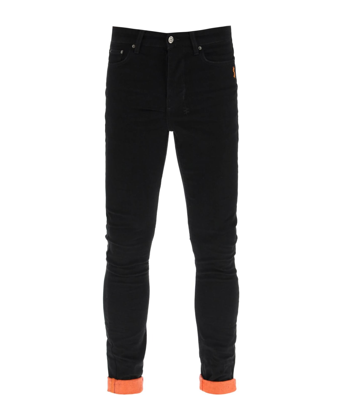 Five-pocket jeans by Ksubi cut from stretch denim to a mid-rise slim fit, detailed with embroidered signature 4x4 and logo on the back. Finished with contrasting roll-up ankle, logoed button fly and belt loops. The model is 187 cm tall and wears a size 30.