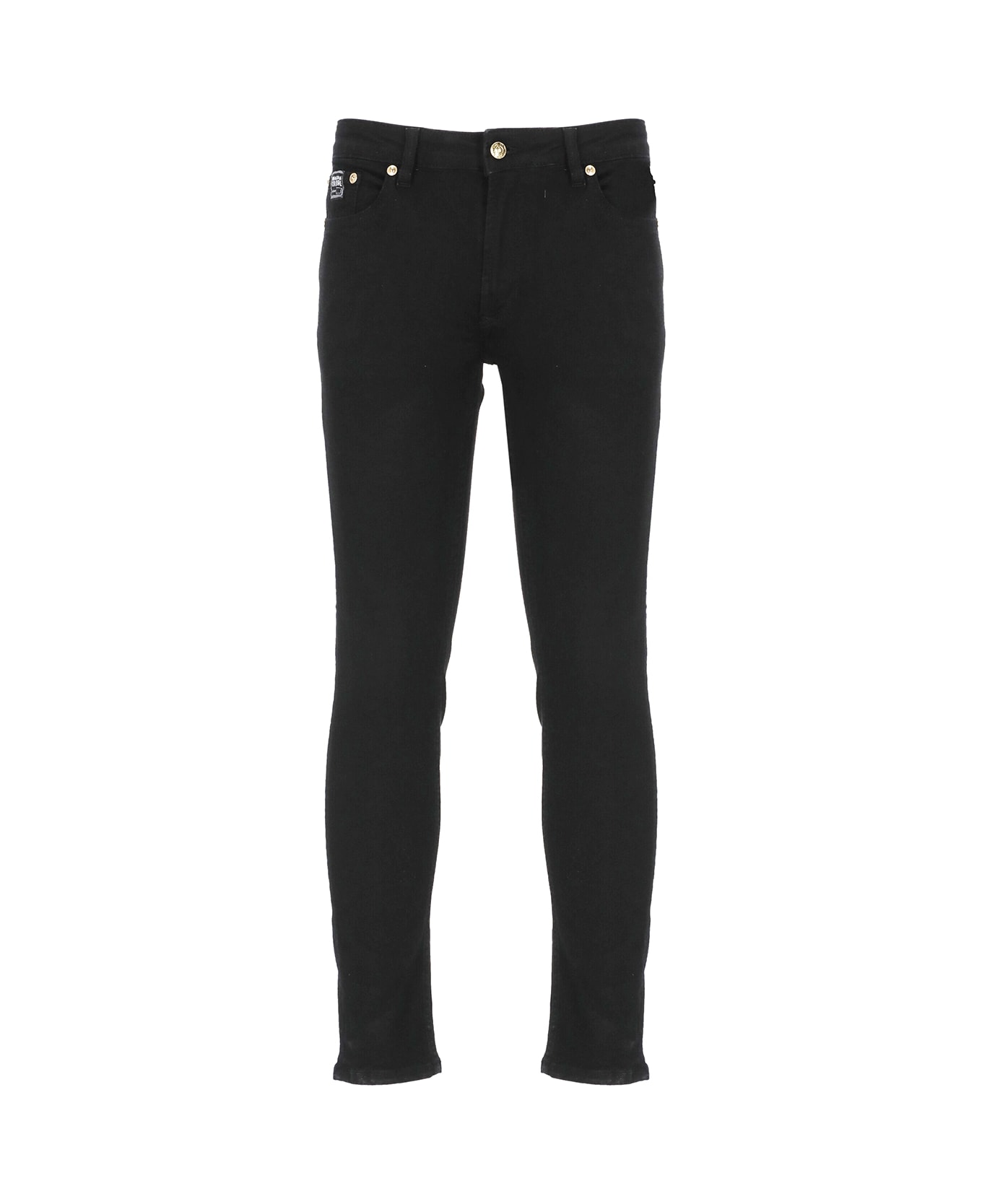 - Black Versace Jeans Couture cotton jeans for man - Elastic waist - Belt loops - Front zip and logoed button fastening - Five pockets - Front tone on tone logoed patch - Rear metallic logoed patch