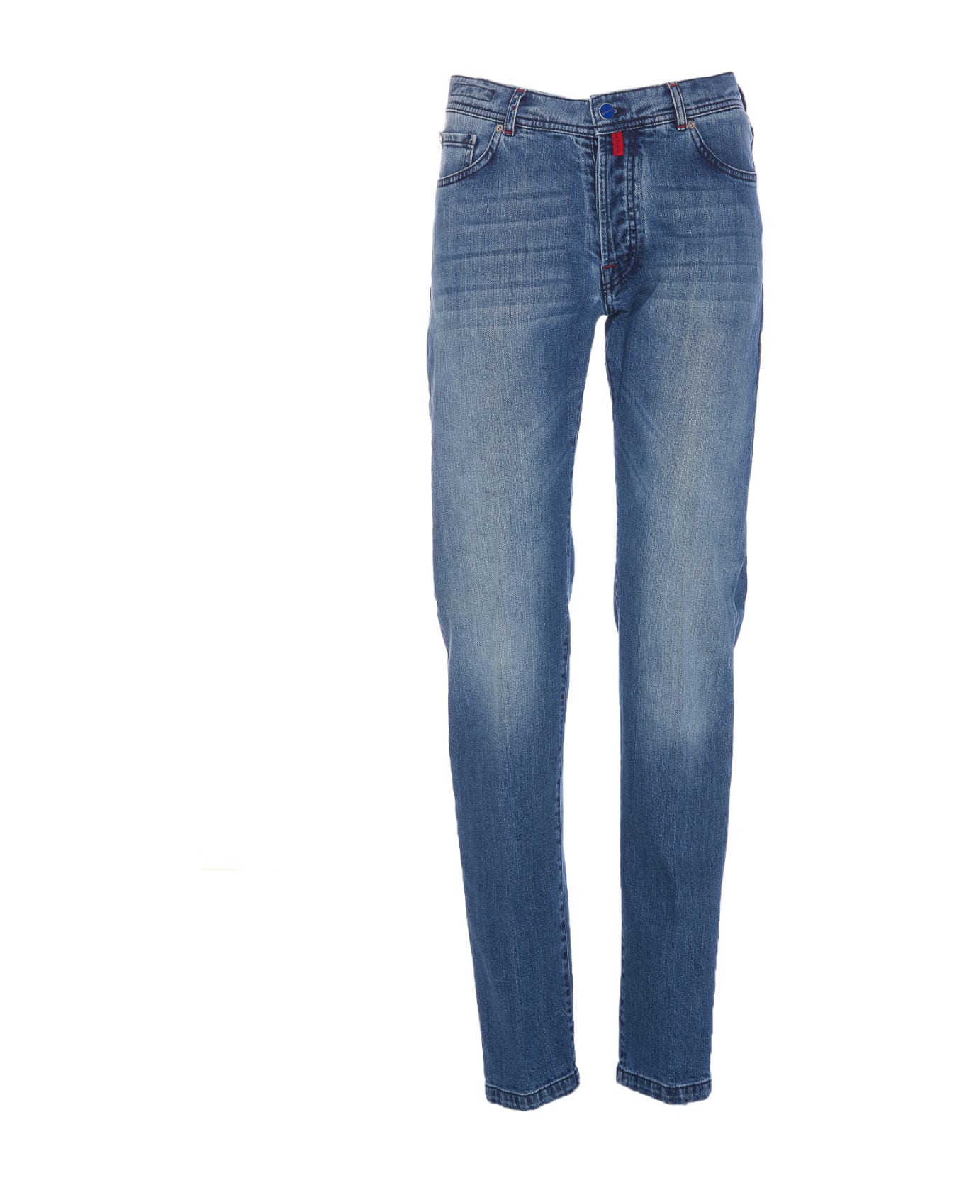 Kiton denim jeans with frontal buttons closure, 5 pockets, skinny model, patch logo on the back Composition: 98% Cotton, 2% Elastane